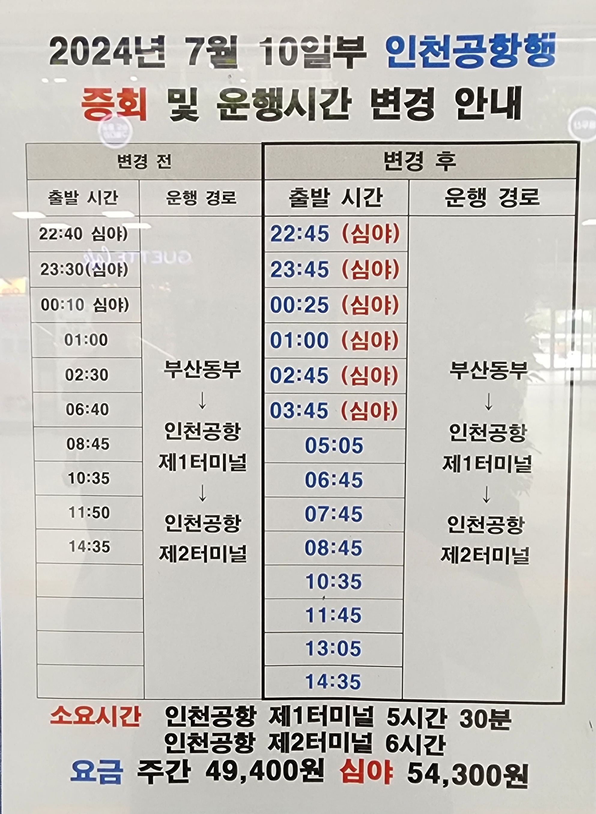 2024년 7월 10일 부터 인천공항 방면 증회 및 운행시간 변경 안내