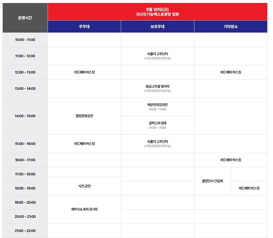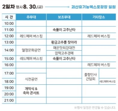 괴산고추축제 8. 29 시간표
