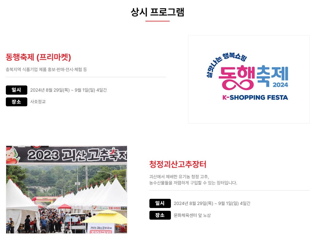 괴산고추축제 상시프로그램 시간표