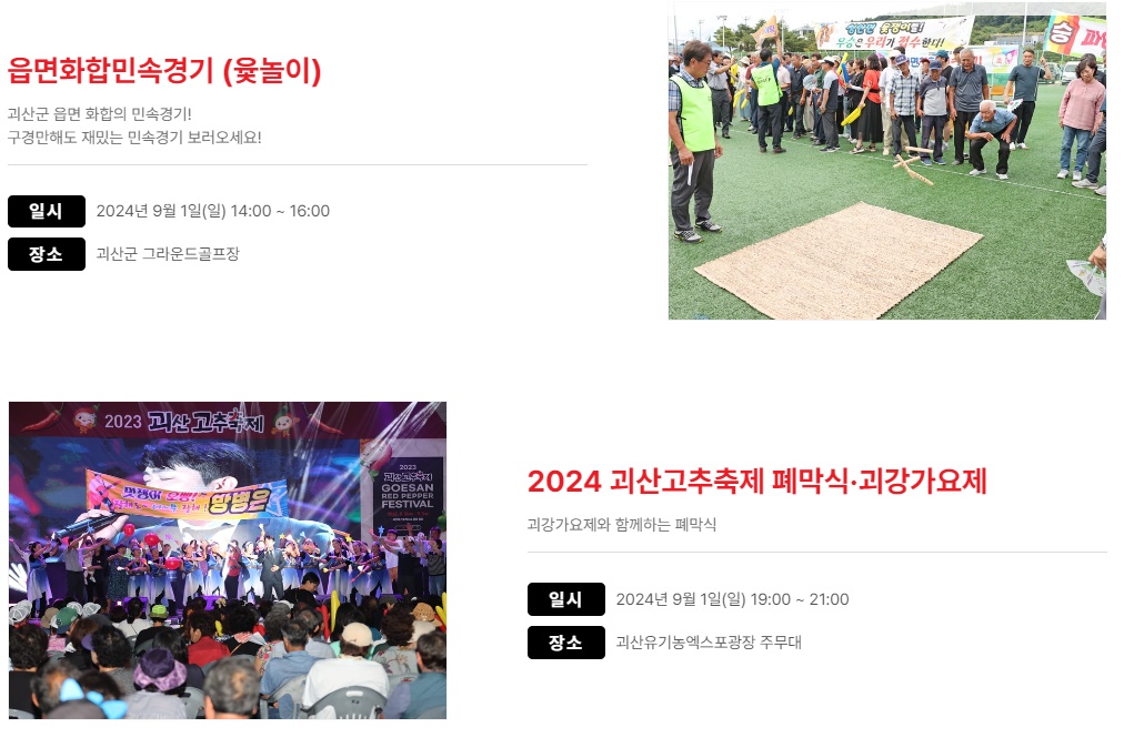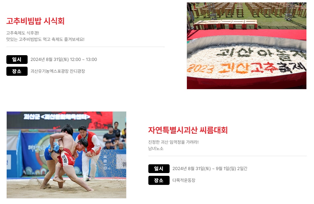 괴산고추축제 8.30 시간표