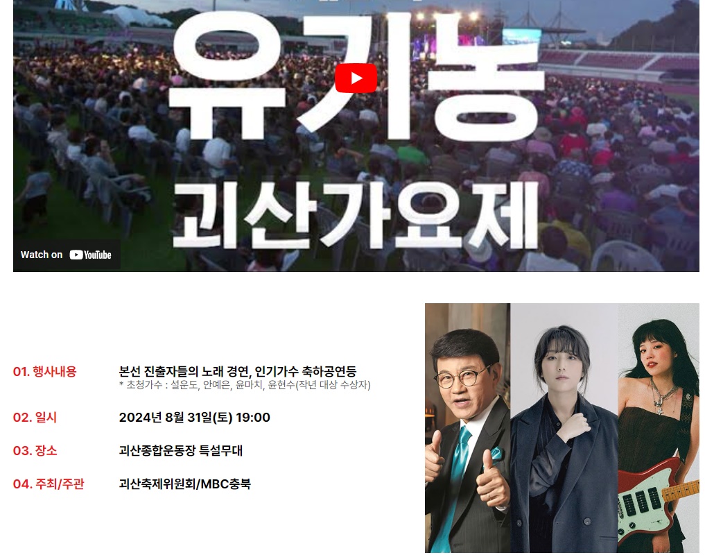 괴산고추축제 유기농 괴산가요제 시간표