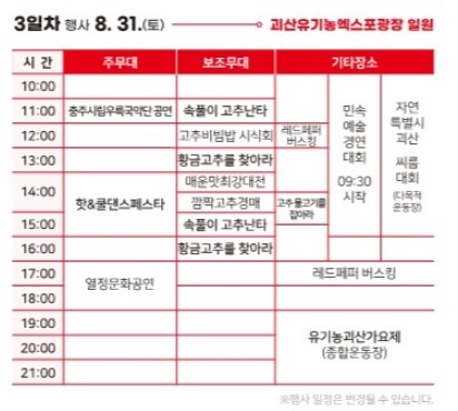 괴산고추축제 8.31. 시간표