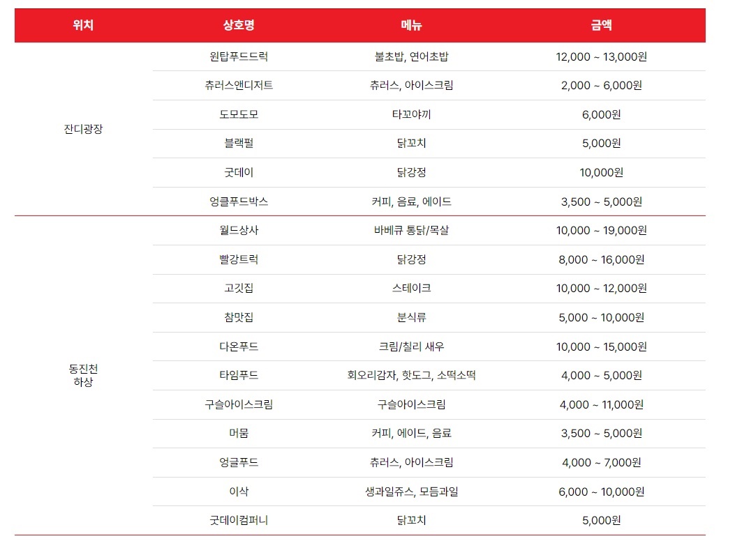 괴산고추축제 푸드트럭 가격표