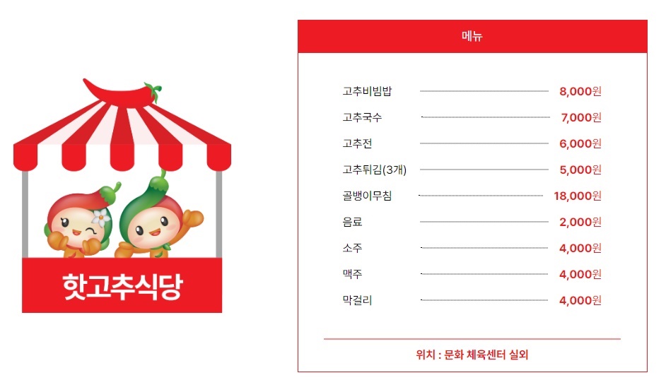 괴산고추축제 먹거리 가격표