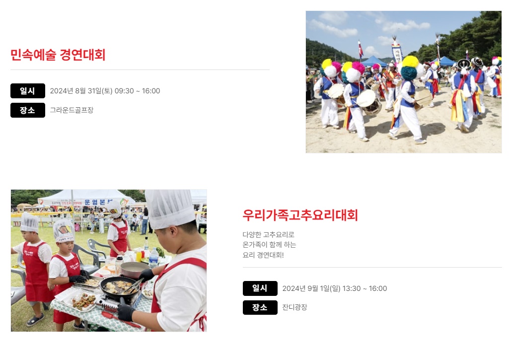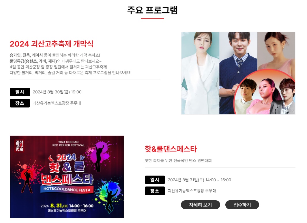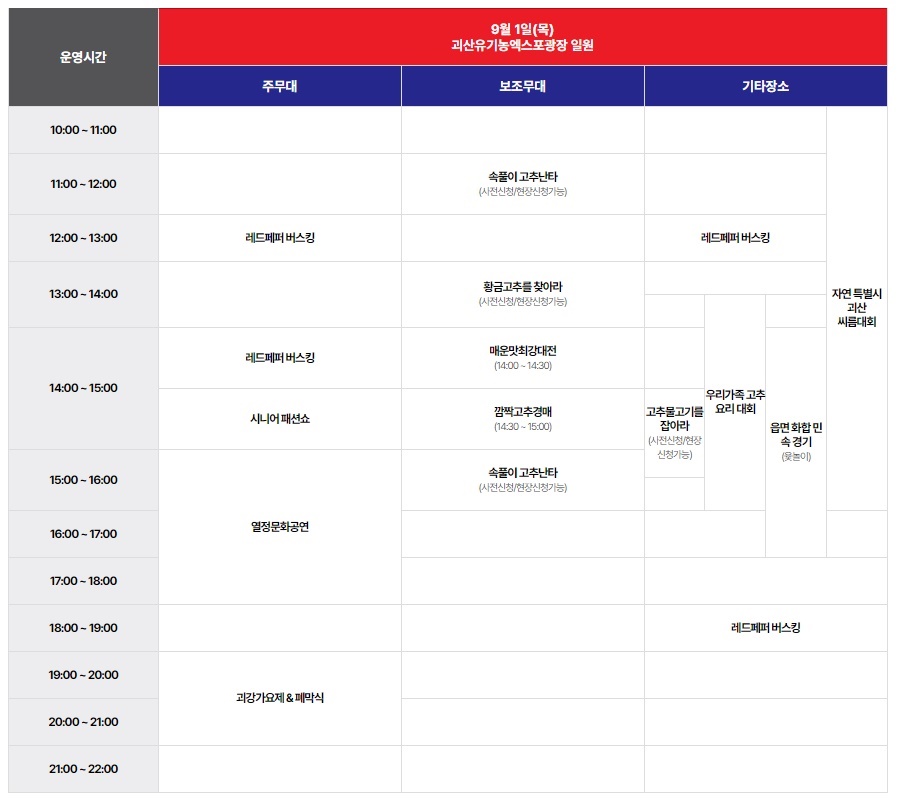 괴산고추축제 주요 프로그램 시간표