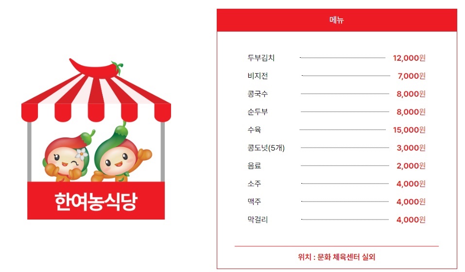 괴산고추축제 먹거리 가격표