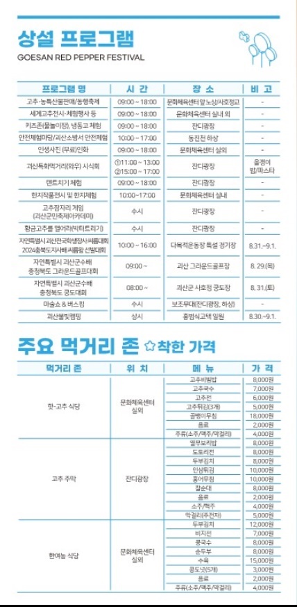 괴산고추축제 상시프로그램 시간표
