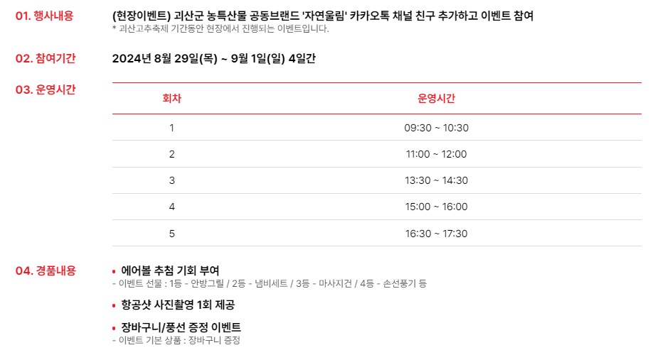 괴산고추축제 자연울림 경품 이벤트