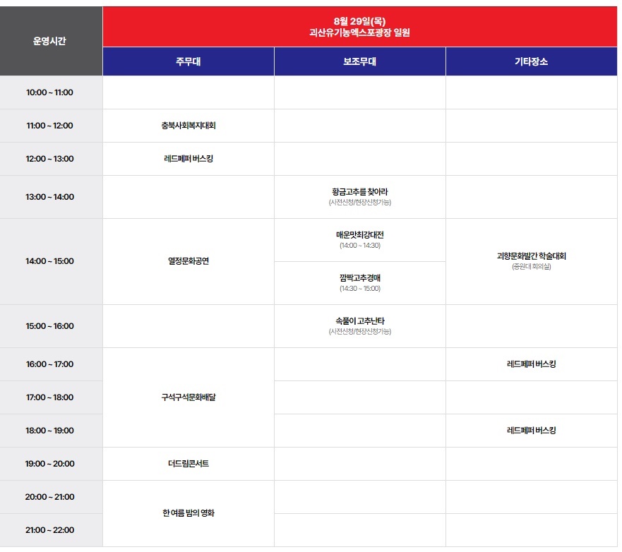 괴산고추축제 8. 29 시간표