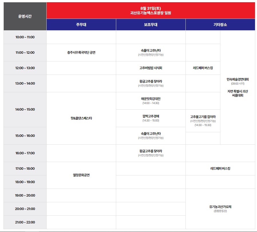 괴산고추축제 8.31. 시간표