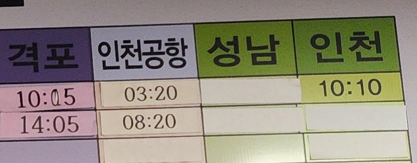 김체 출발 서울 방면 금호고속 센트럴시티 시간표