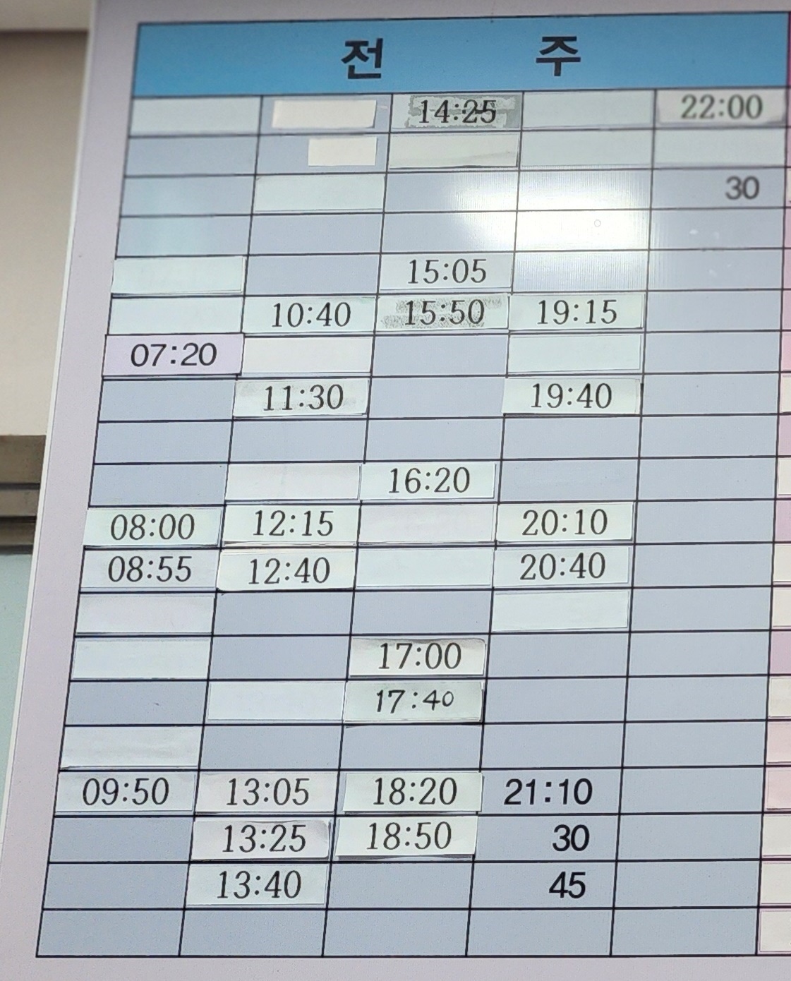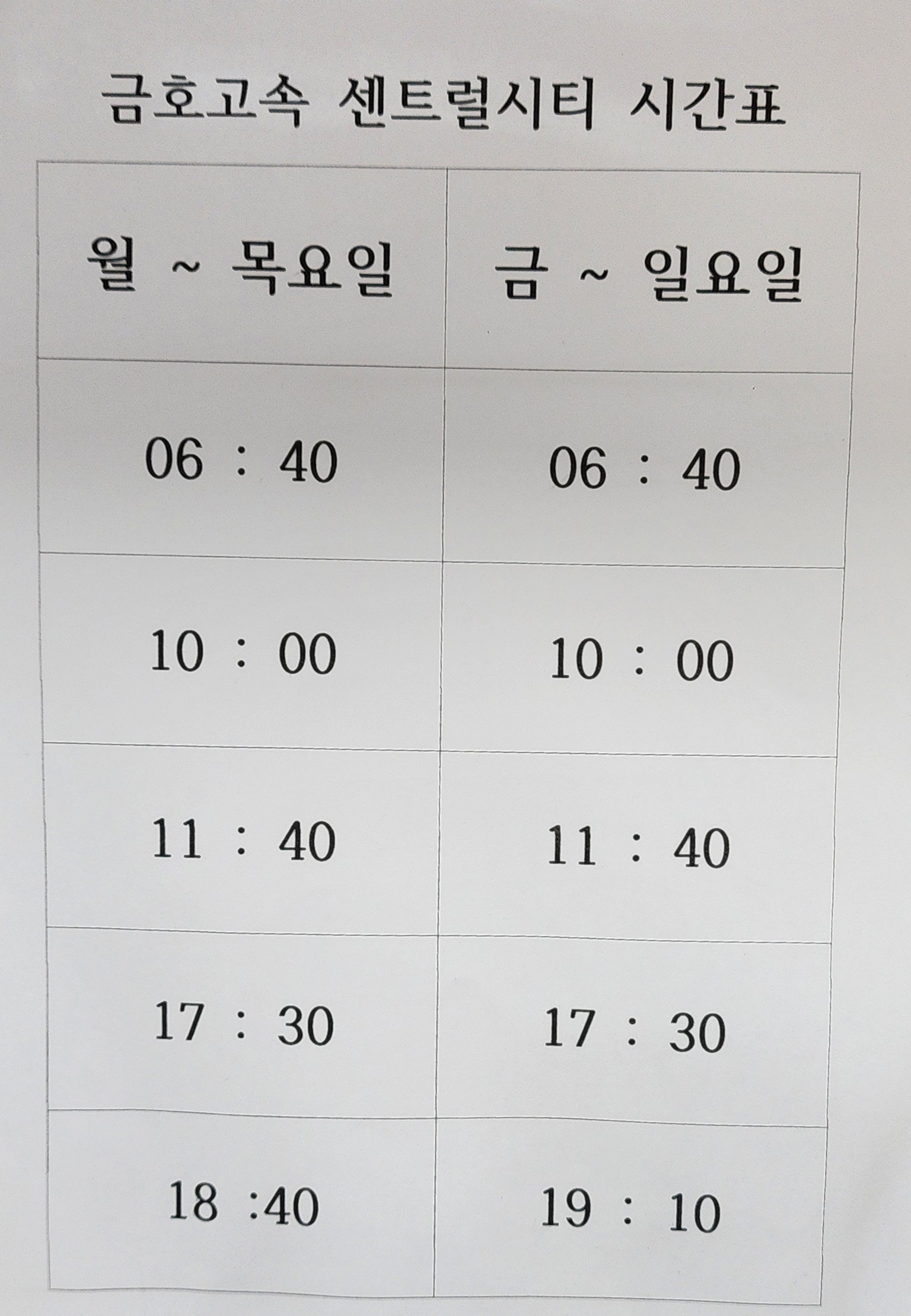 김체 출발 서울 방면 금호고속 센트럴시티 시간표