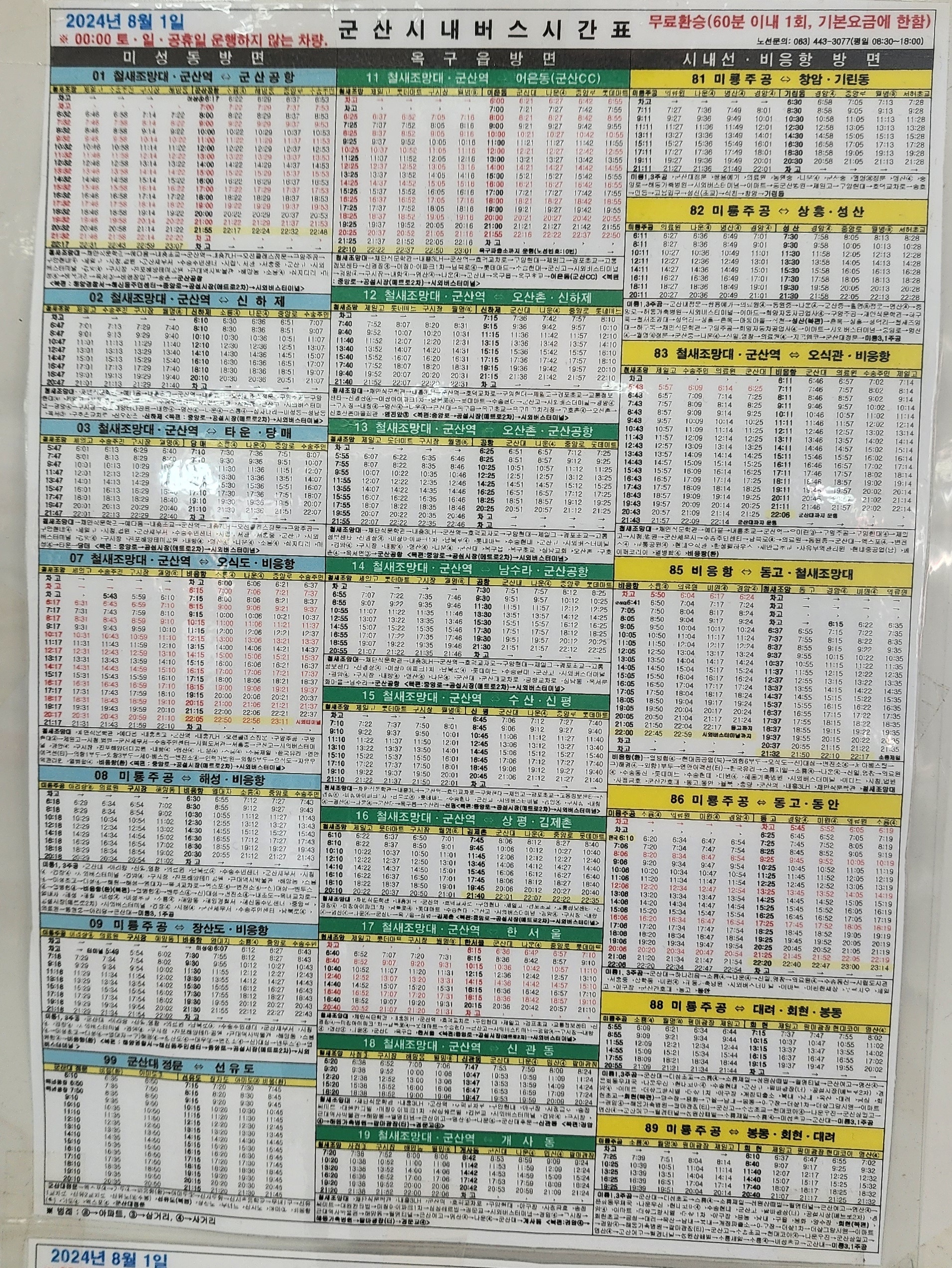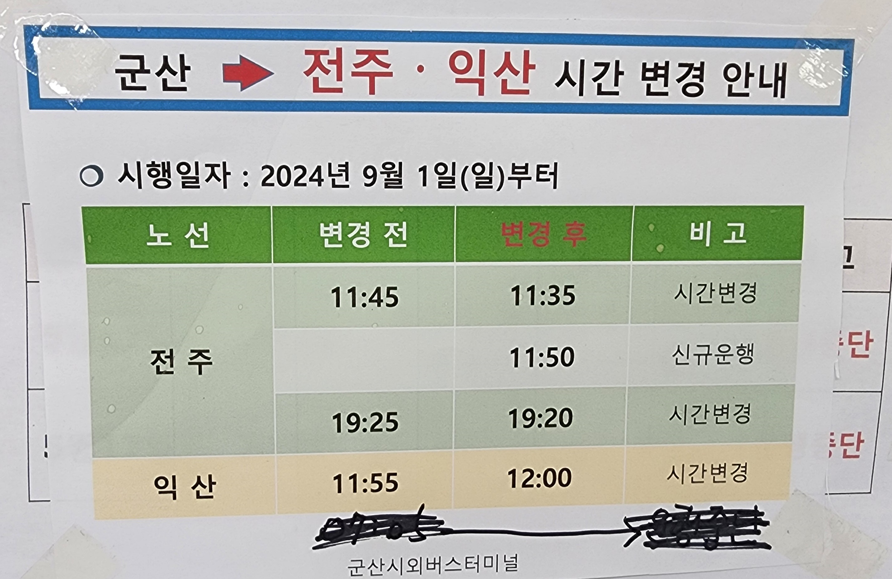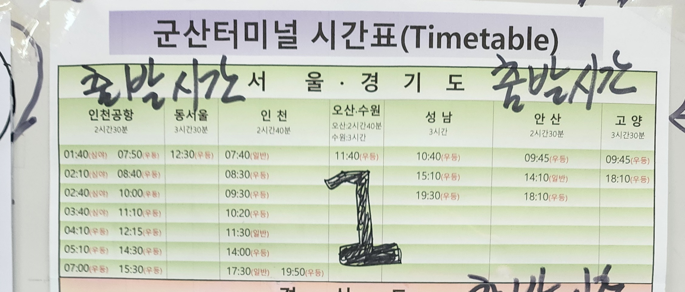 군산 출발 부산, 대구, 김해, 양산, 경주, 포항, 마산, 울산 방면.