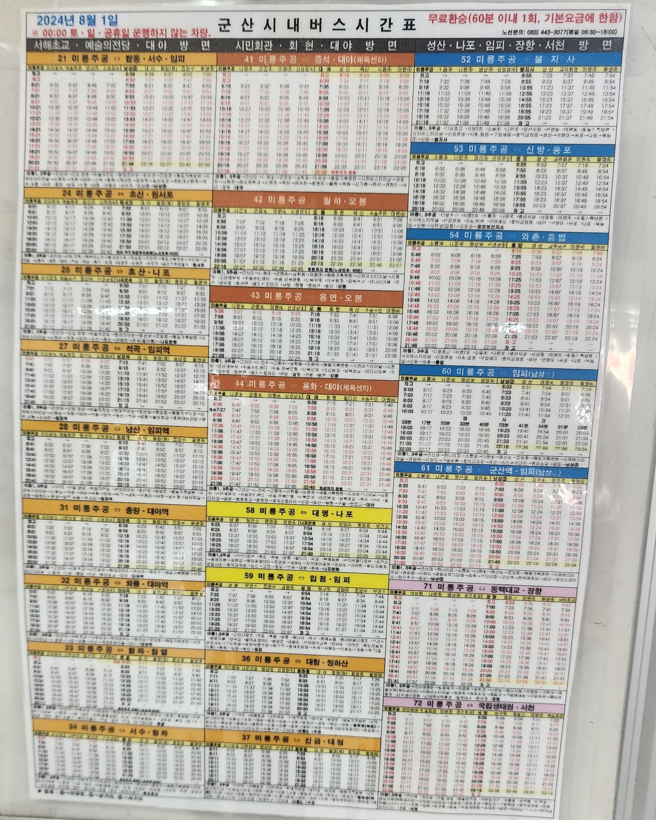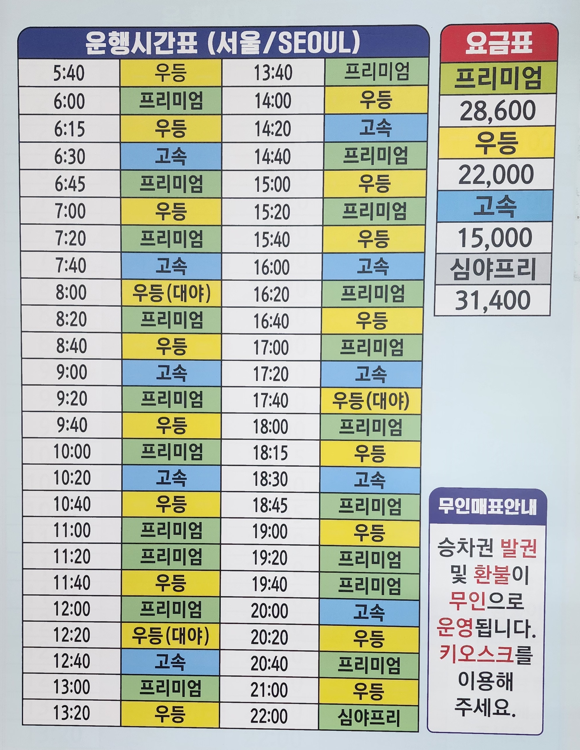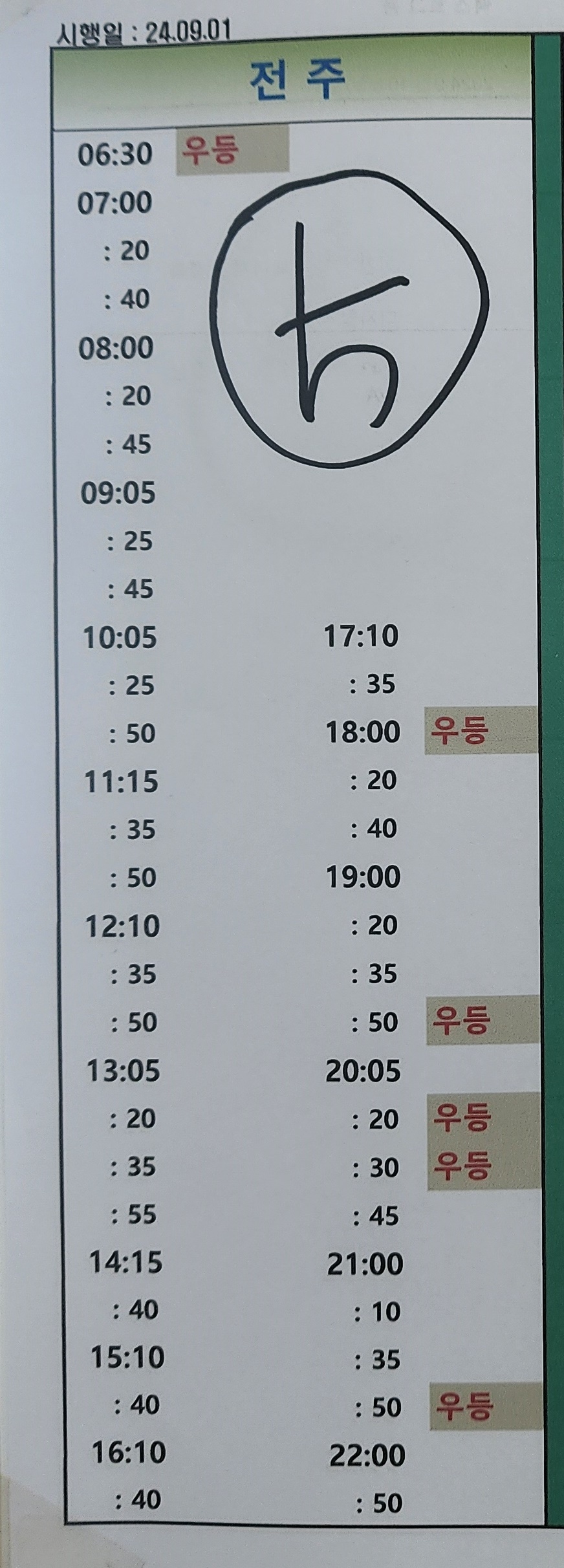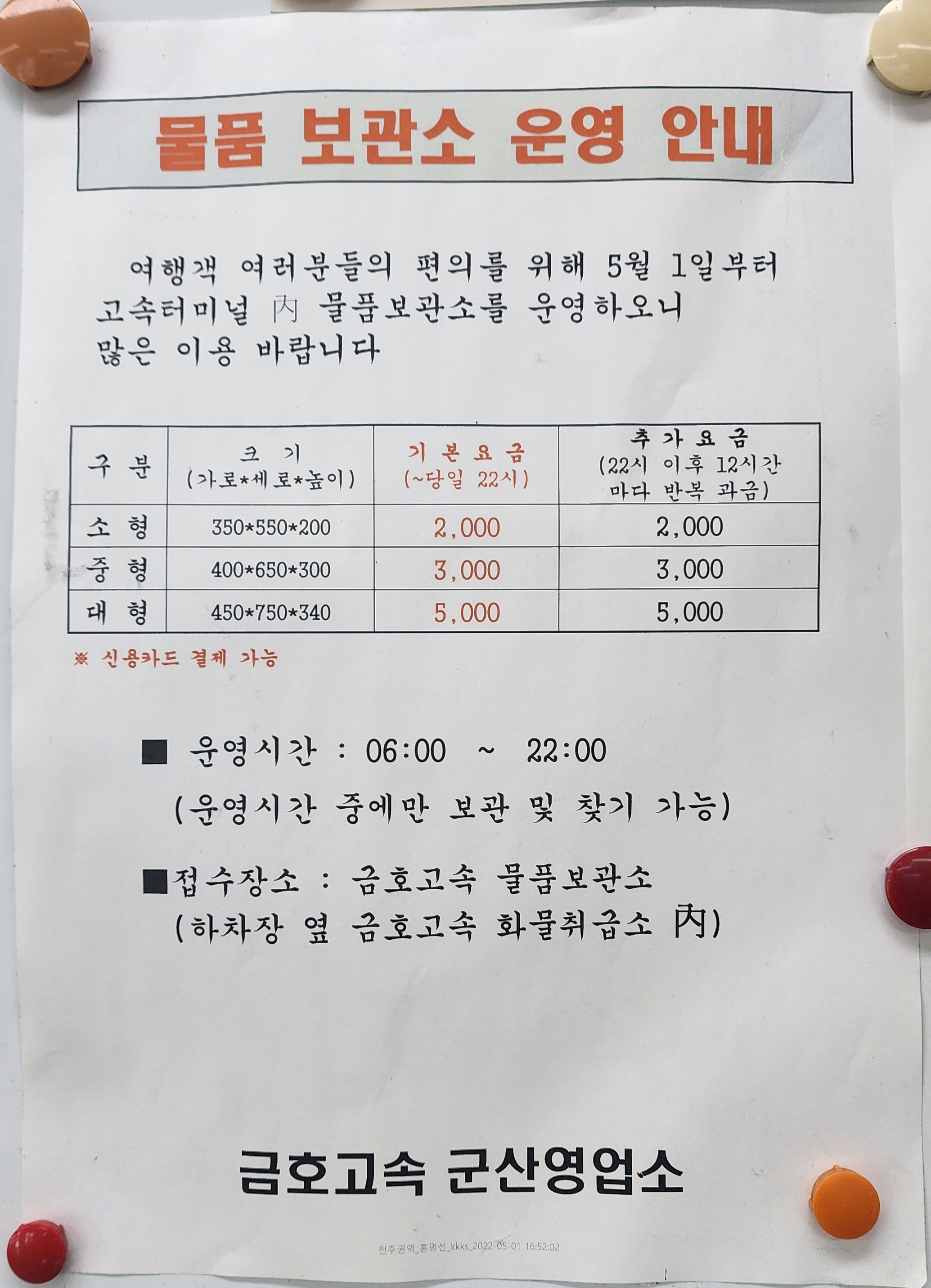 군산 출발 부산, 대구, 김해, 양산, 경주, 포항, 마산, 울산 방면.
