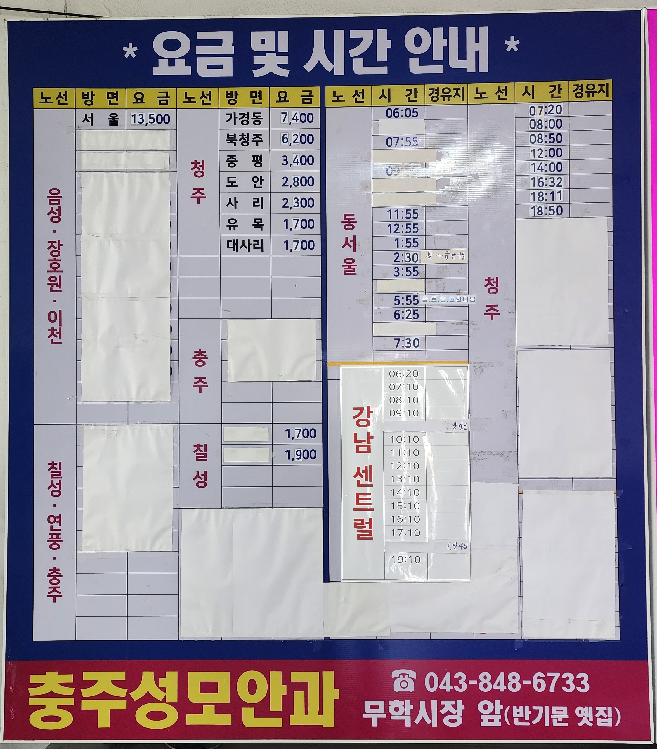 괴산 시외버스터미널 요금표