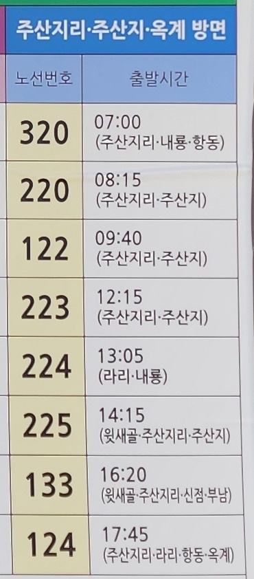 청송 주왕산 출발 주산지리, 주산지, 옥계 방면.