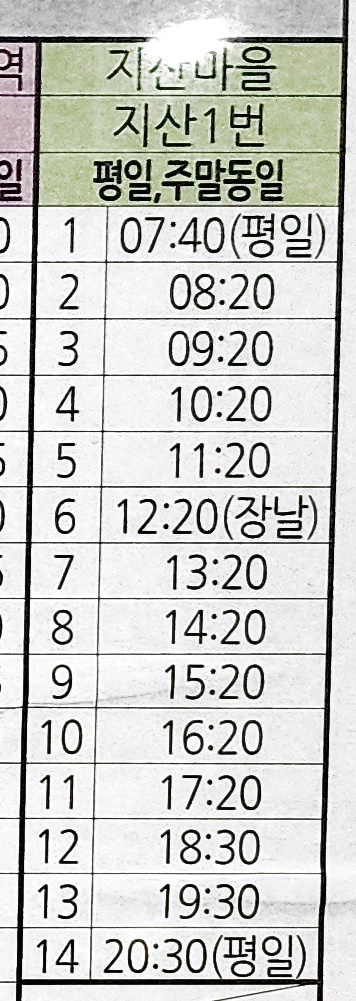신평 출발 지산마을 방면 5번 시간표