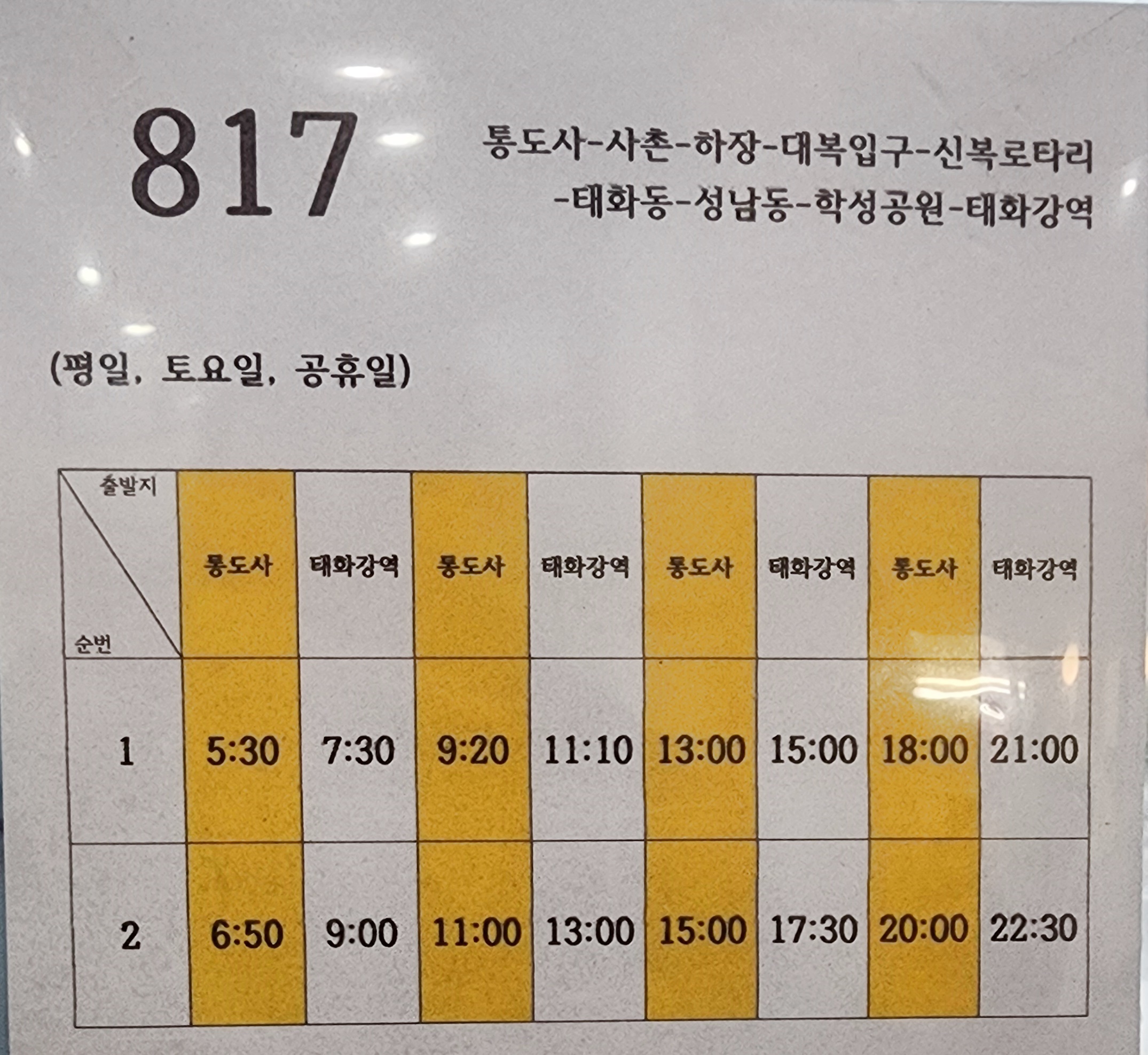 울산 시내버스 817번 버스 시간표