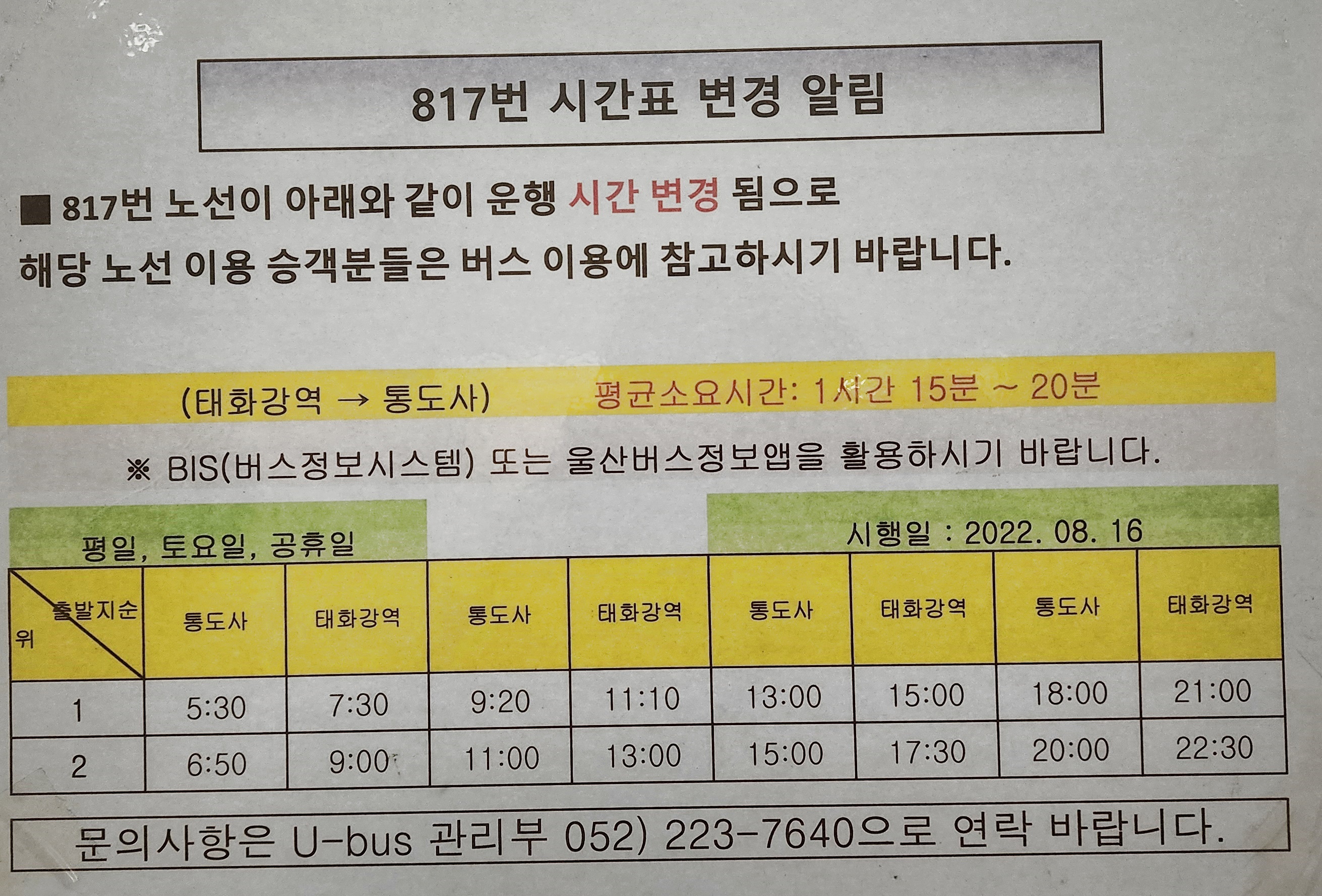 울산 시내버스 817번 버스 시간표