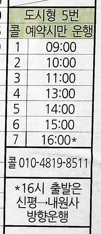 신평 출발 지산마을 방면 5번 시간표