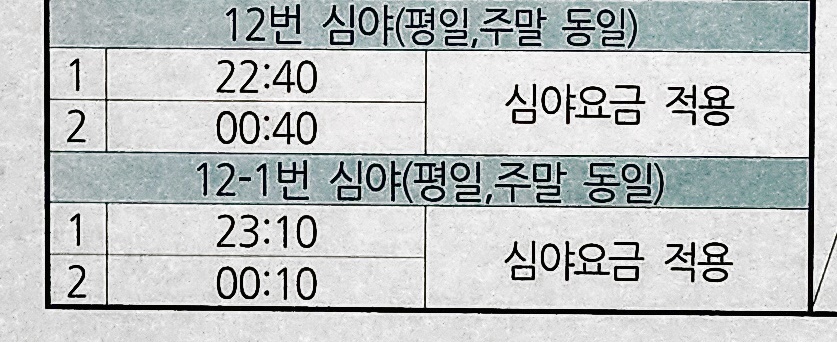 신평 출발 부산 명륜역 방면 12번 12-1번 심야 시간표