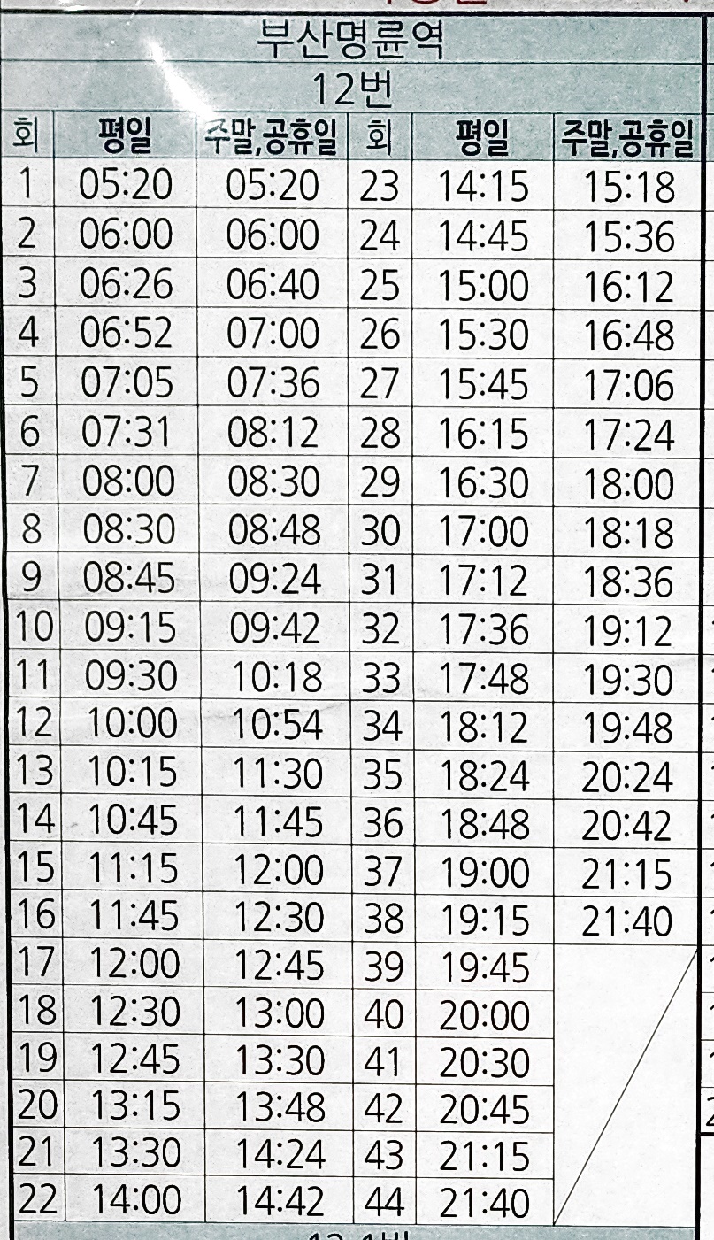 신평 출발 부산 명륜역 방면 12번 시간표