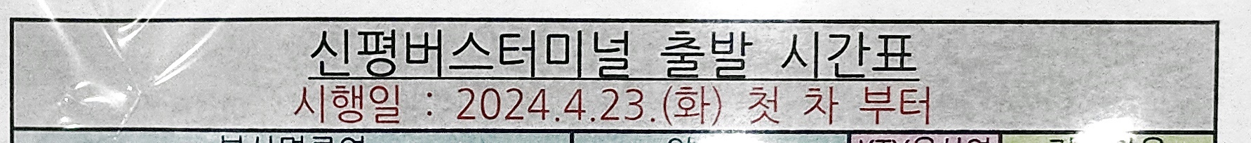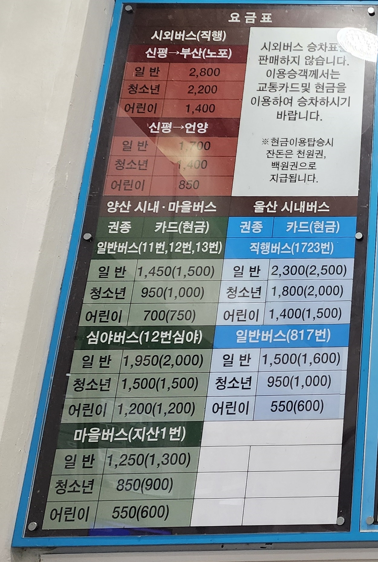 신평시외버스터미널 요금표