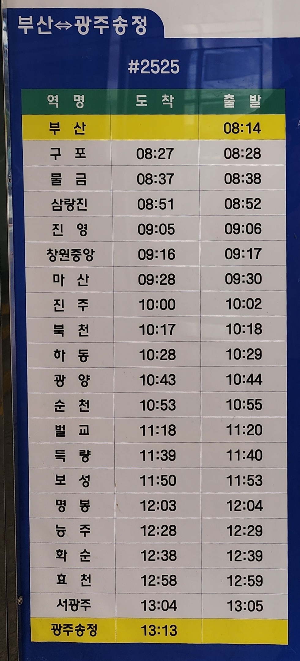 삼랑진 도착 08:51 삼랑진 출발 08:52 광주송정역 방면