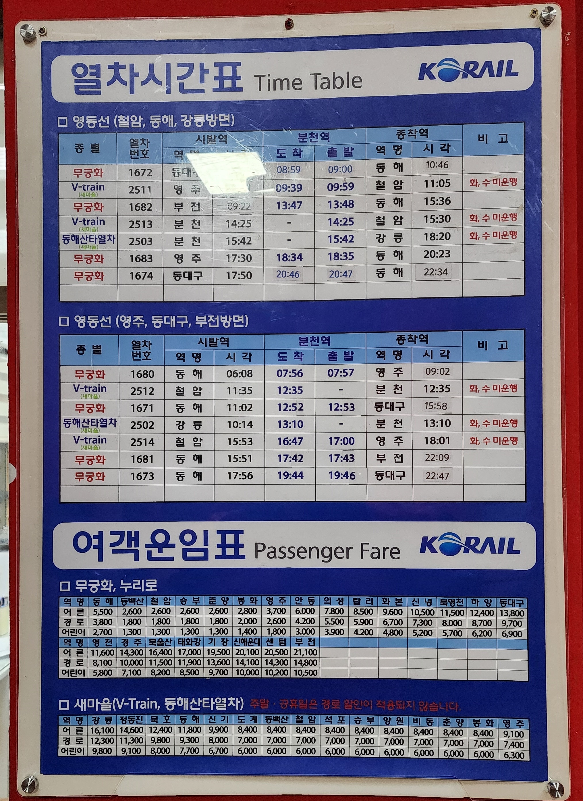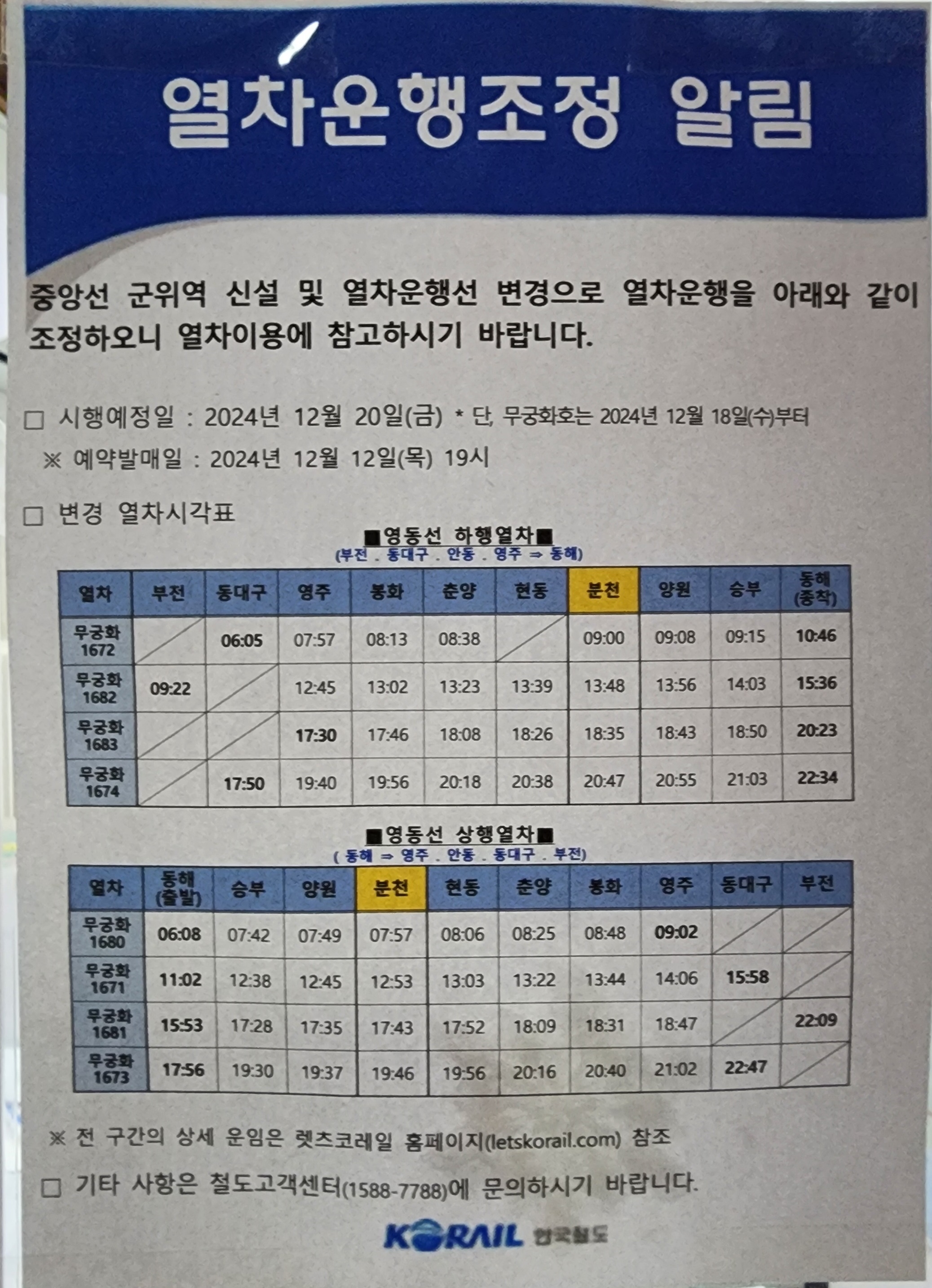 영동선 분천역 출발 영주, 동대구, 부전 방면.