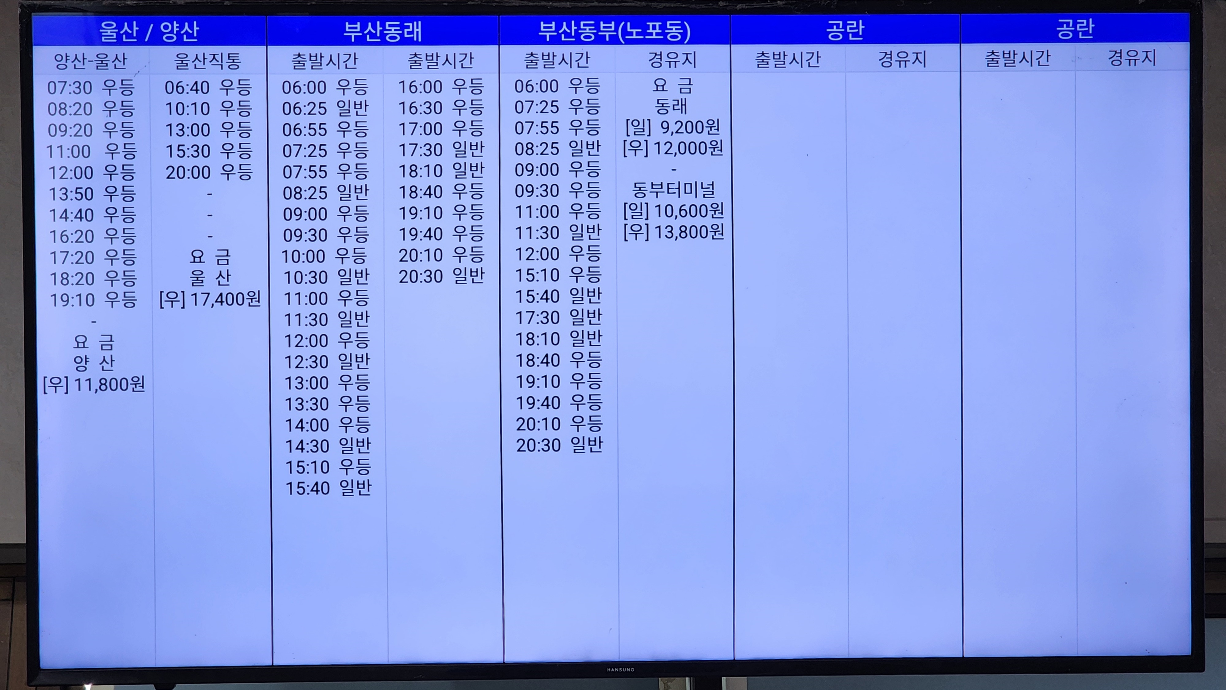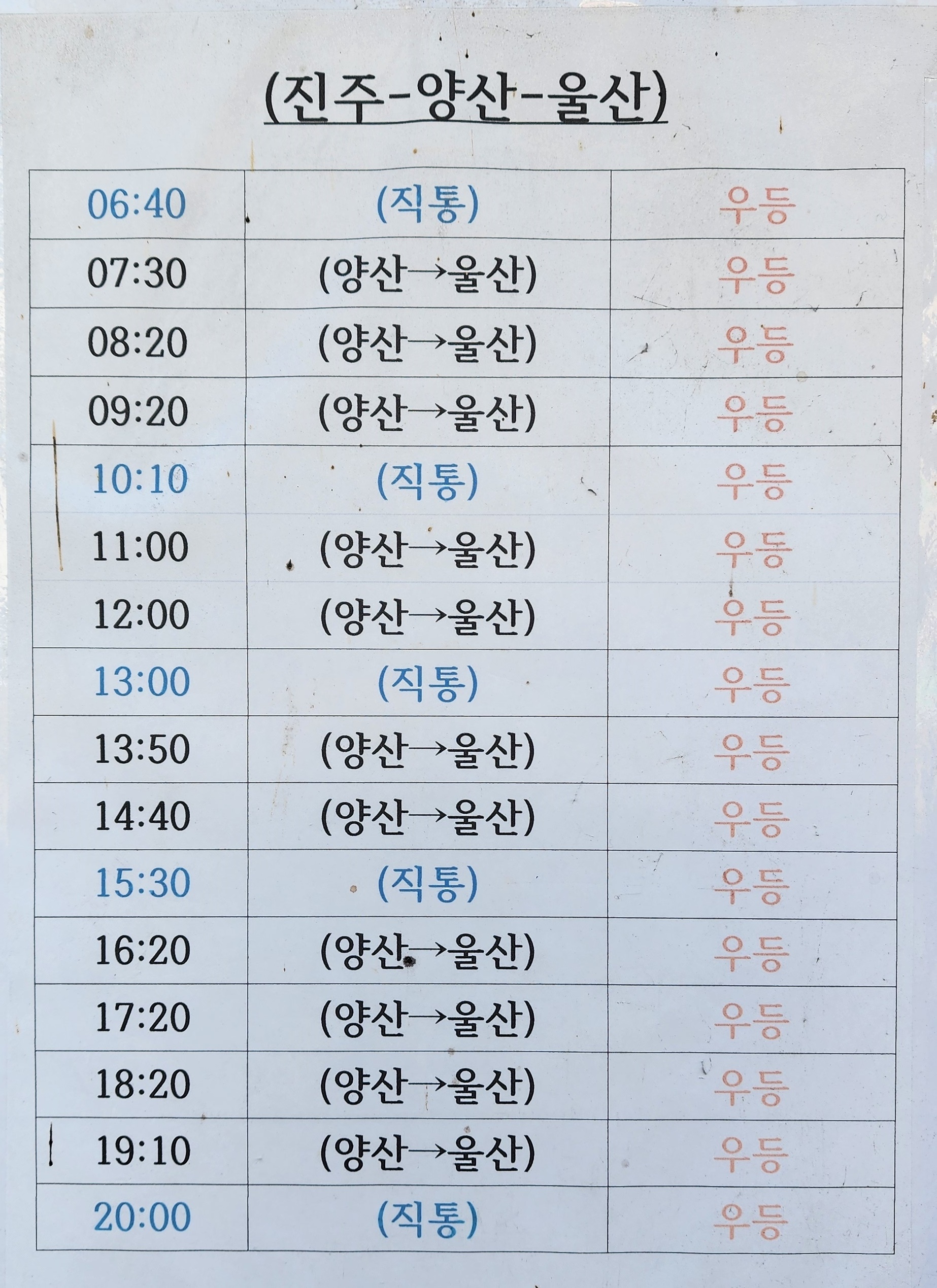 진주 출발 울산, 양산, 부산 동래, 부산 동부 노포동 방면.