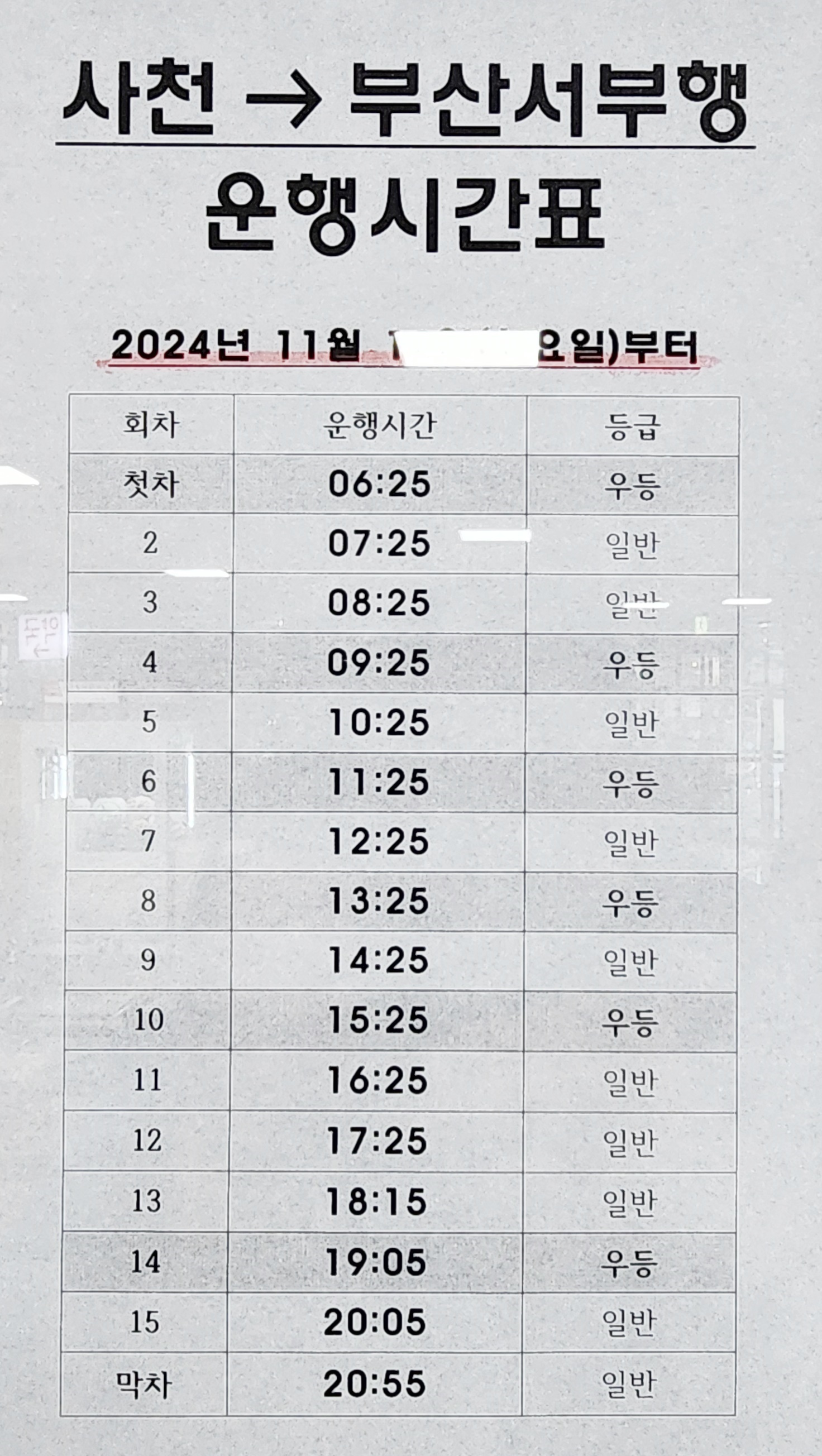 사천 출발 부산 서부 방면.