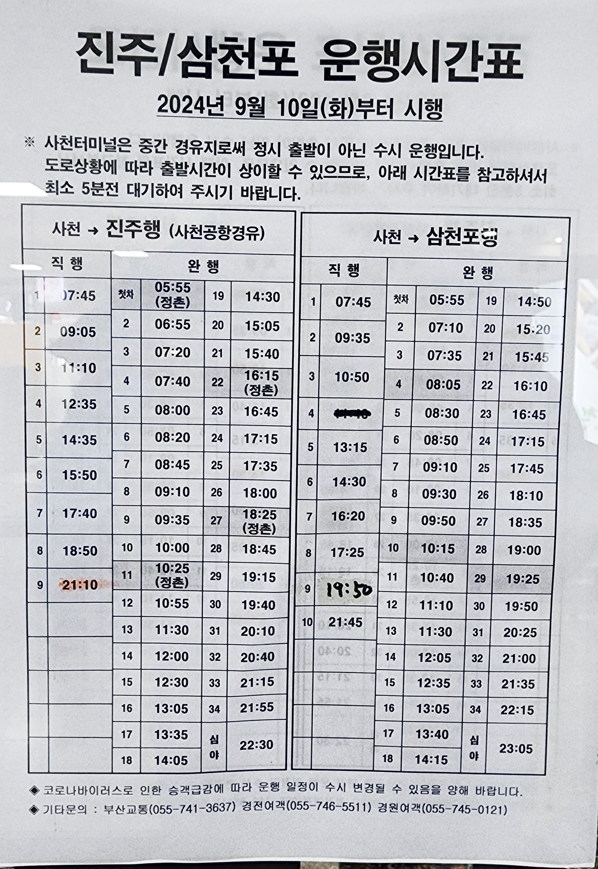 사천시외버스터미널 시간표