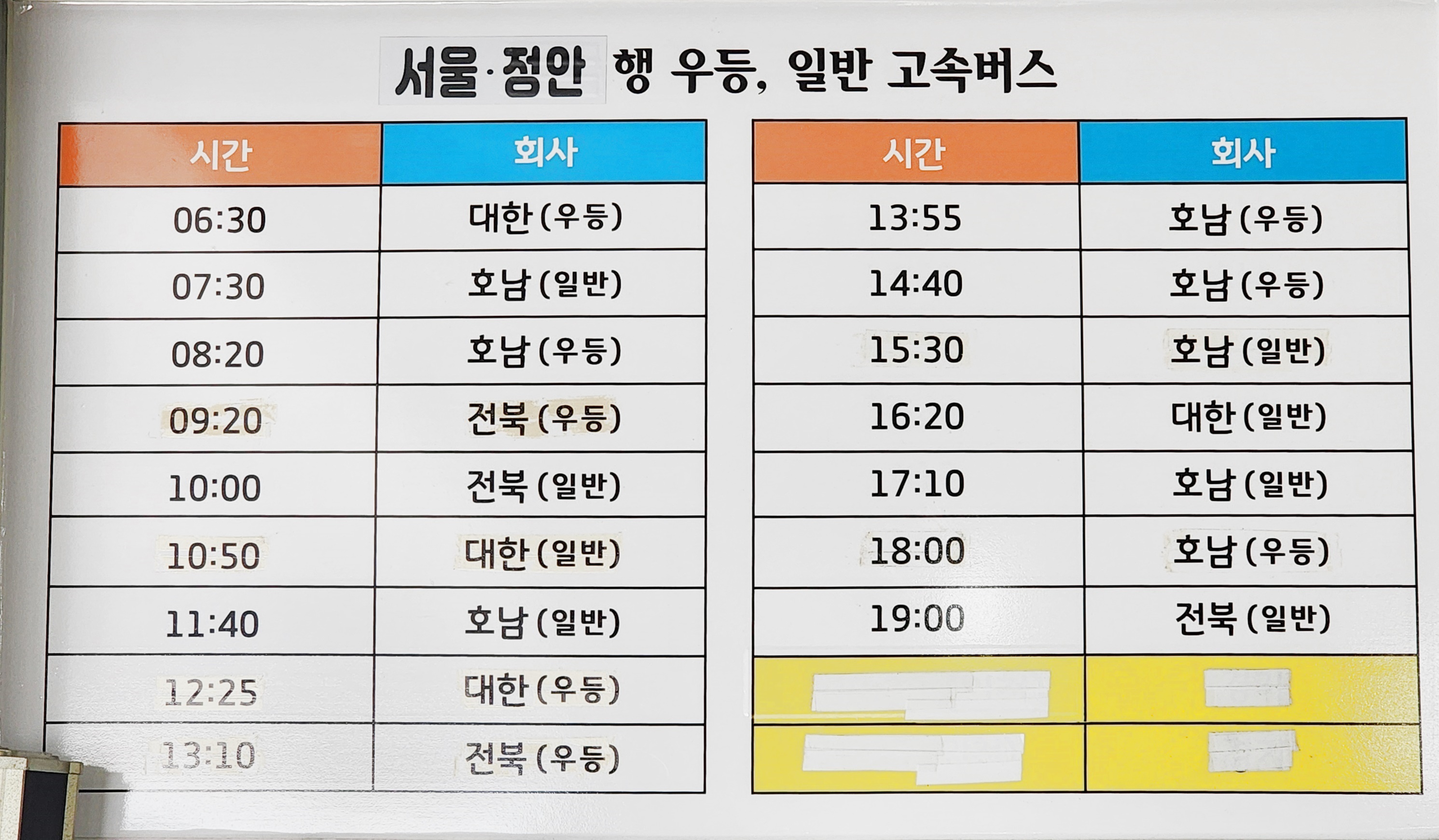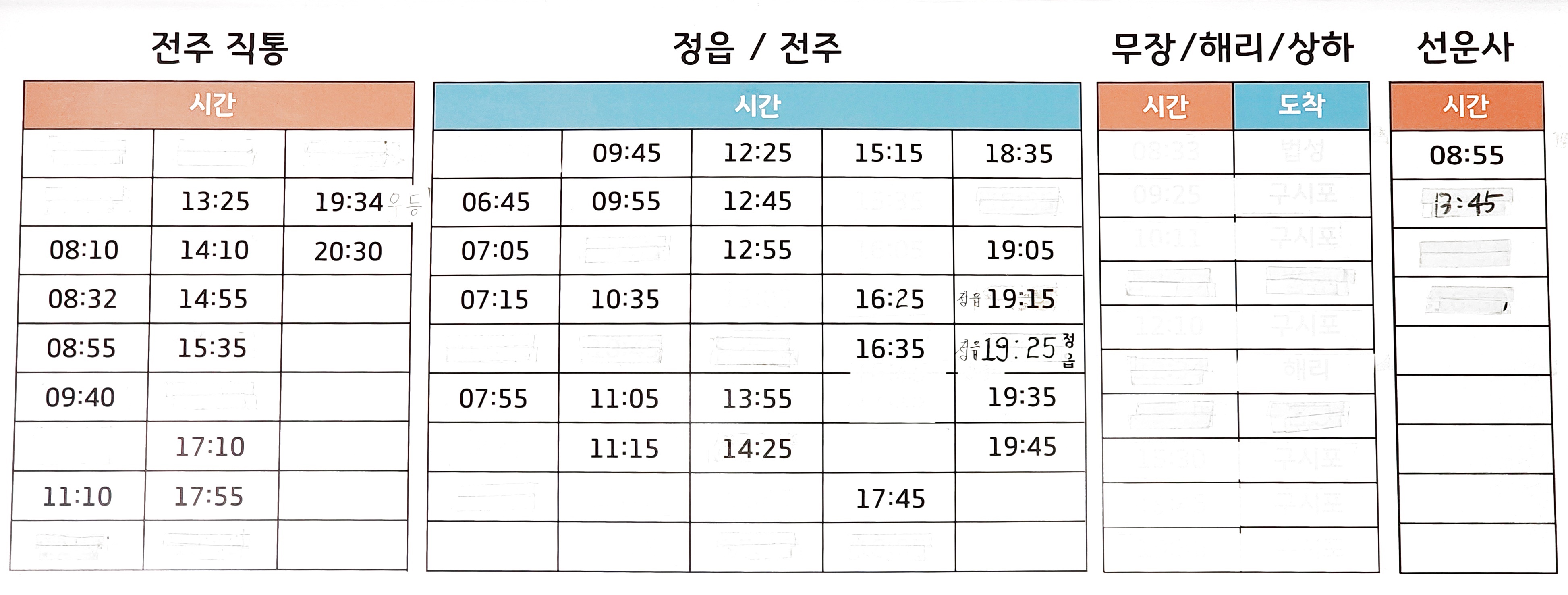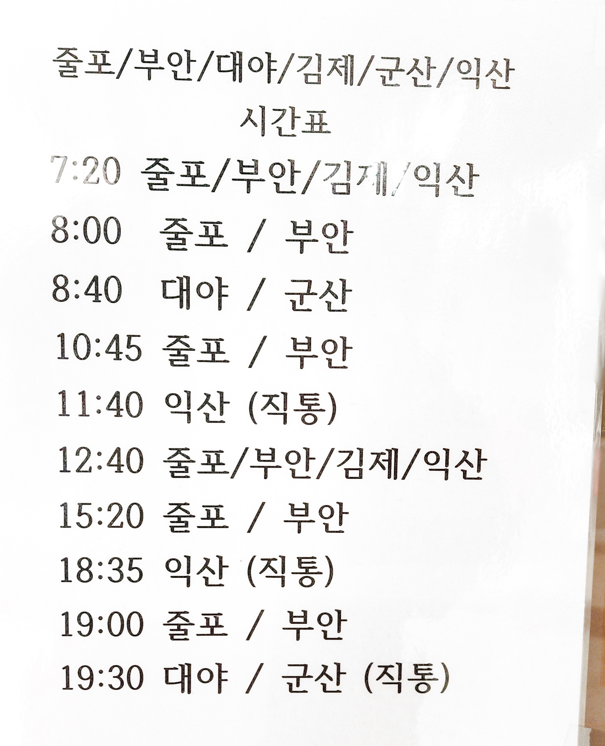 고창 출발 줄포, 부안, 대야, 김제, 군산, 익산 방면.
