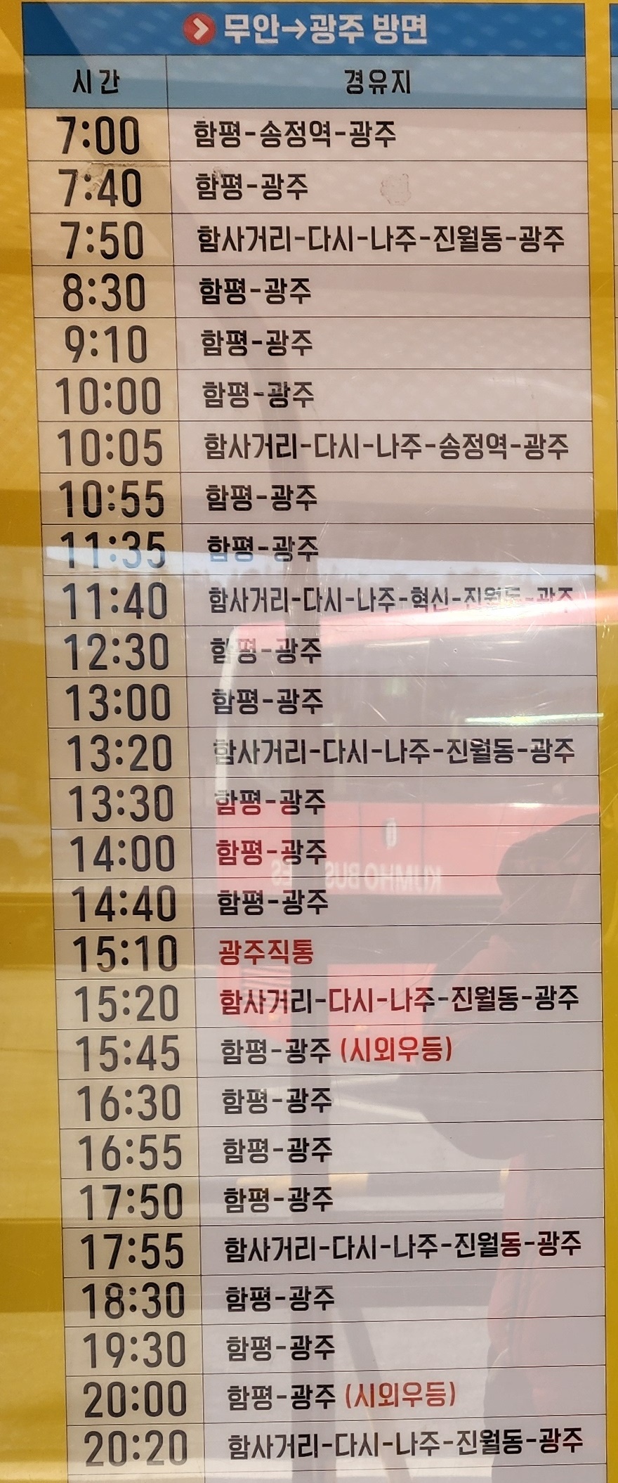 무안 출발 광주 방면.