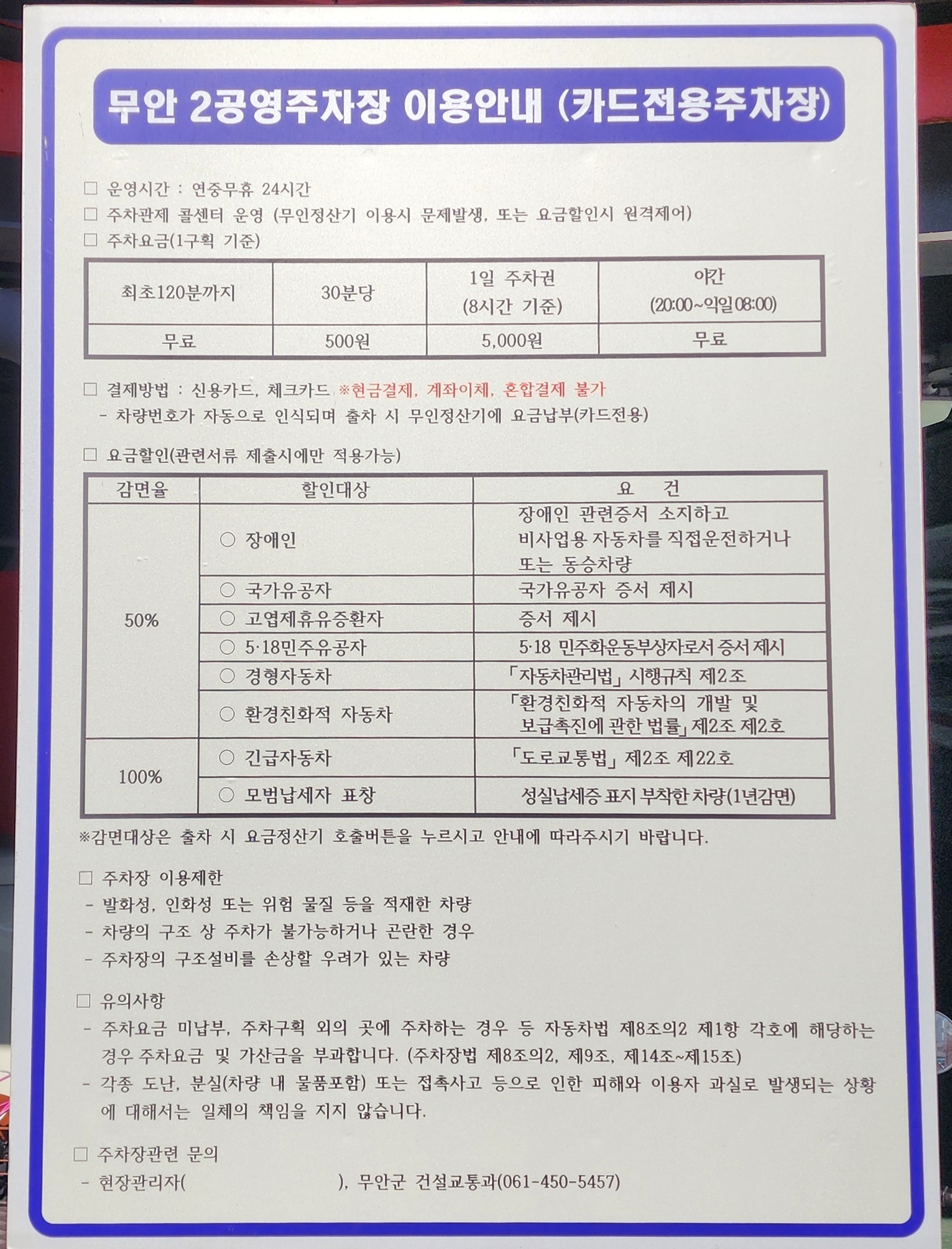 무안 2공영주차장 이용한내