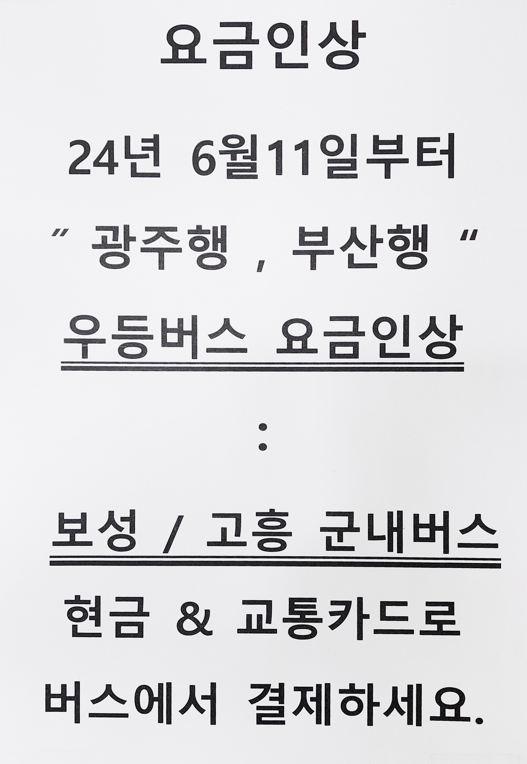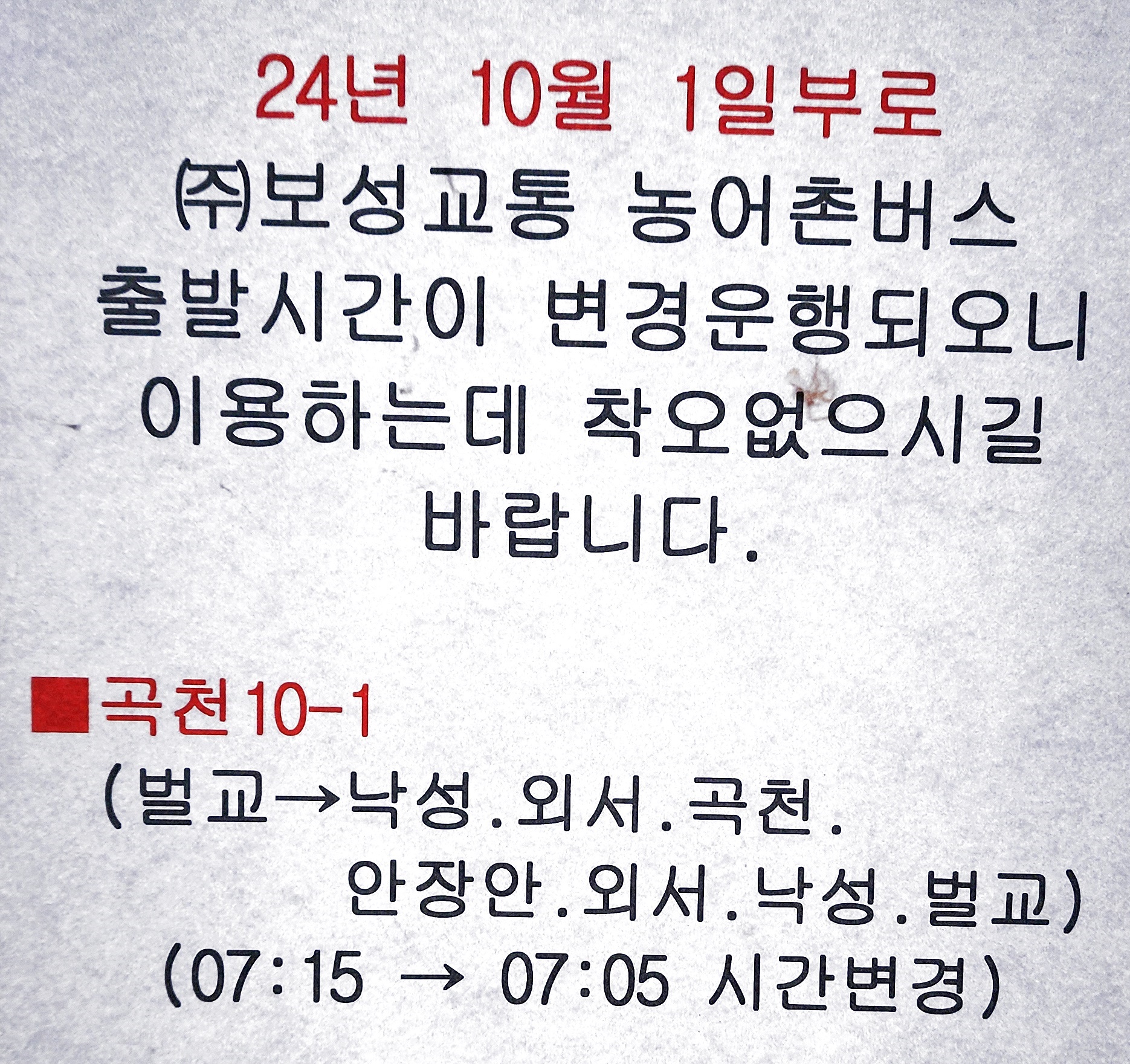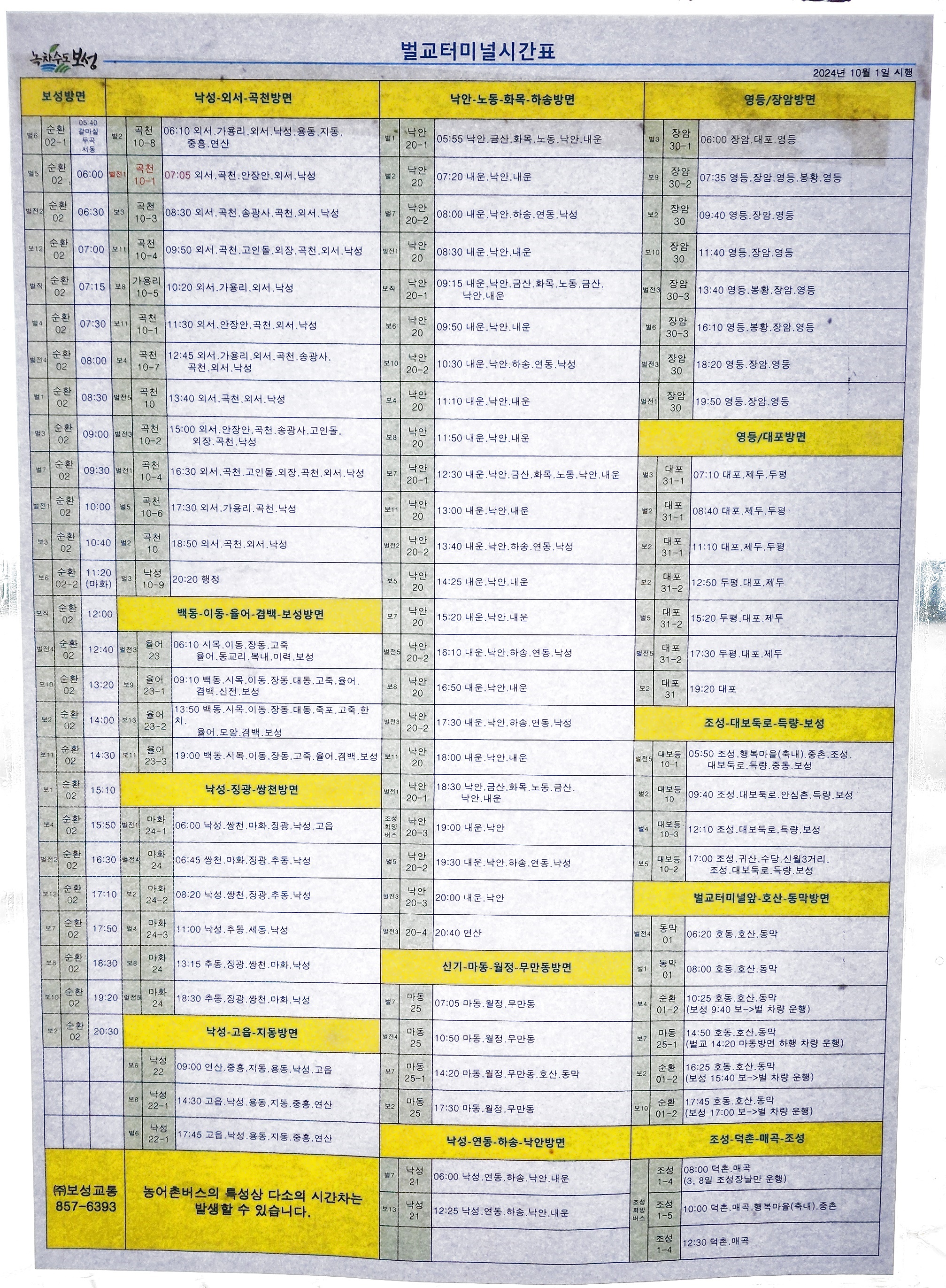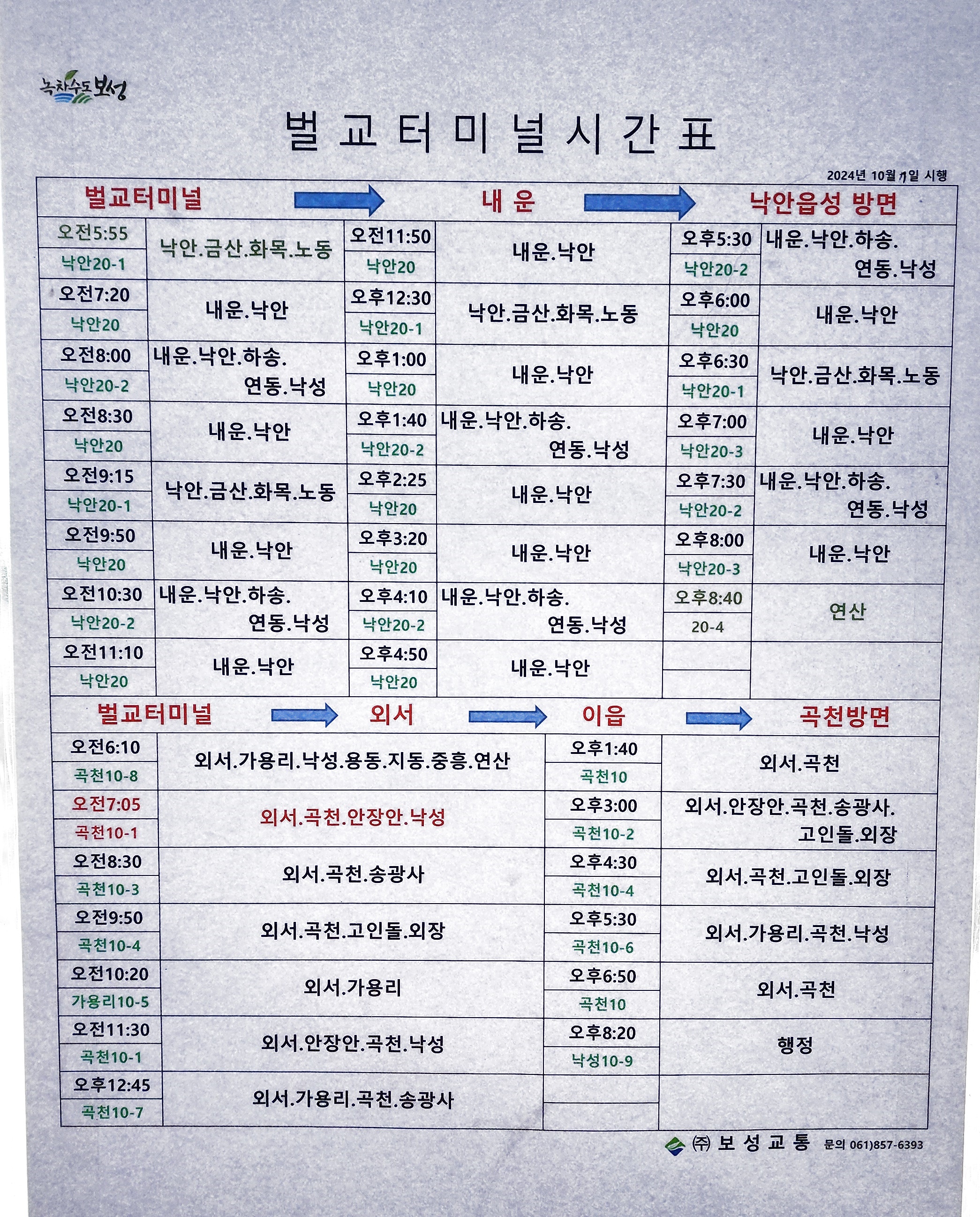 벌교 출발 내운, 낙안읍성,외서, 이읍, 곡천 방면.