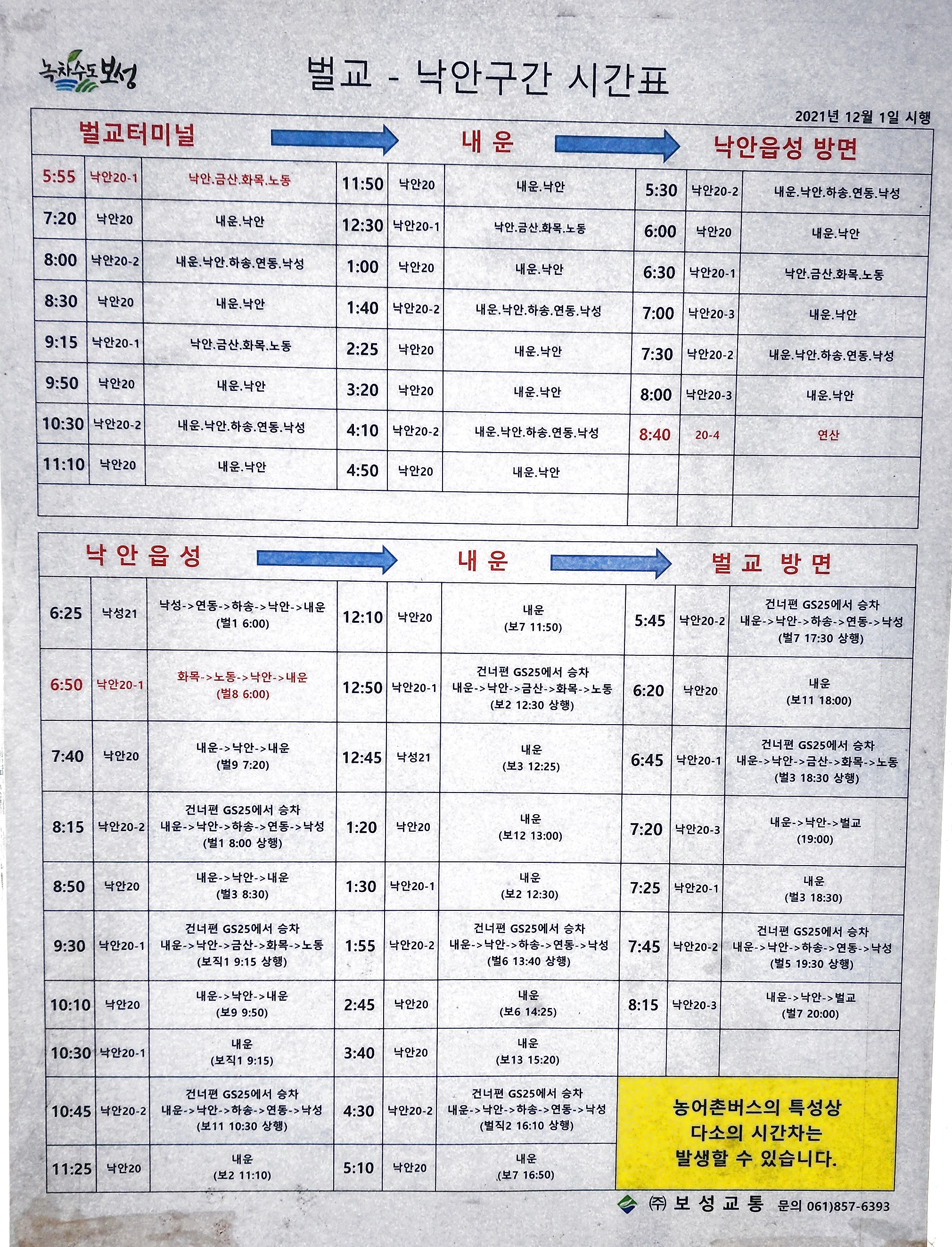 벌교 출발 낙안구간 시간표