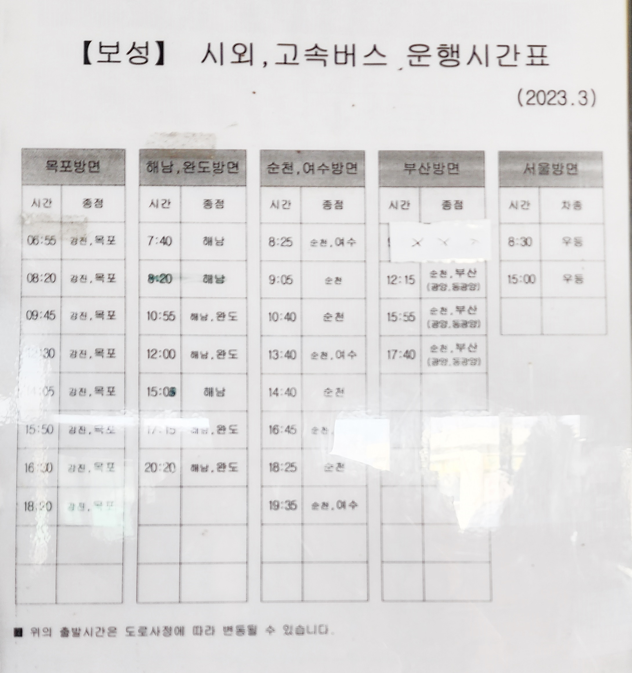 보성시외버스터미널 시간표