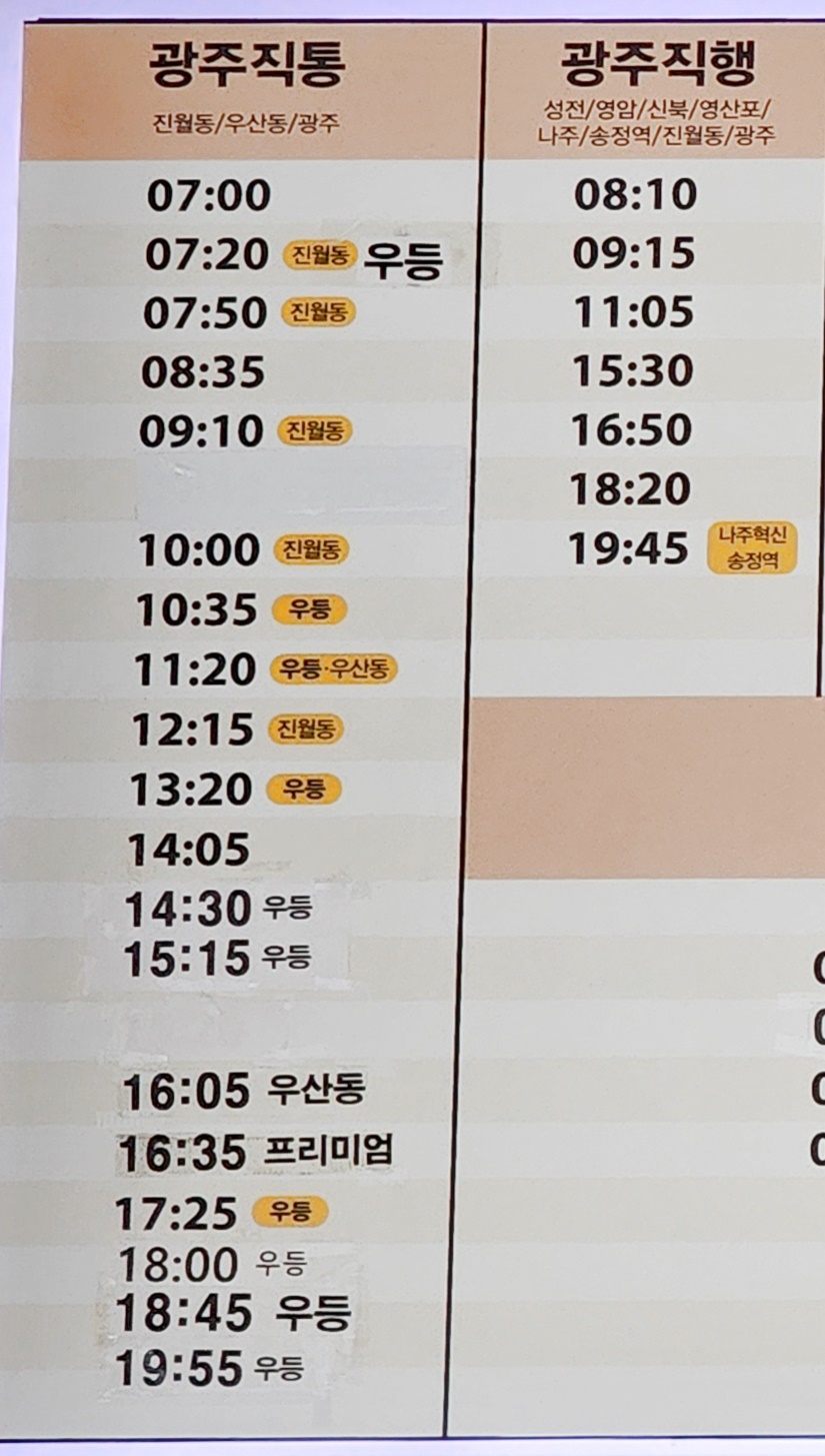 해남 출발 광주 방면.