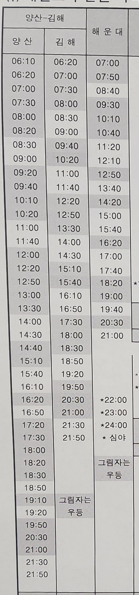 울산 출발 양산, 김해, 해운대 방면.