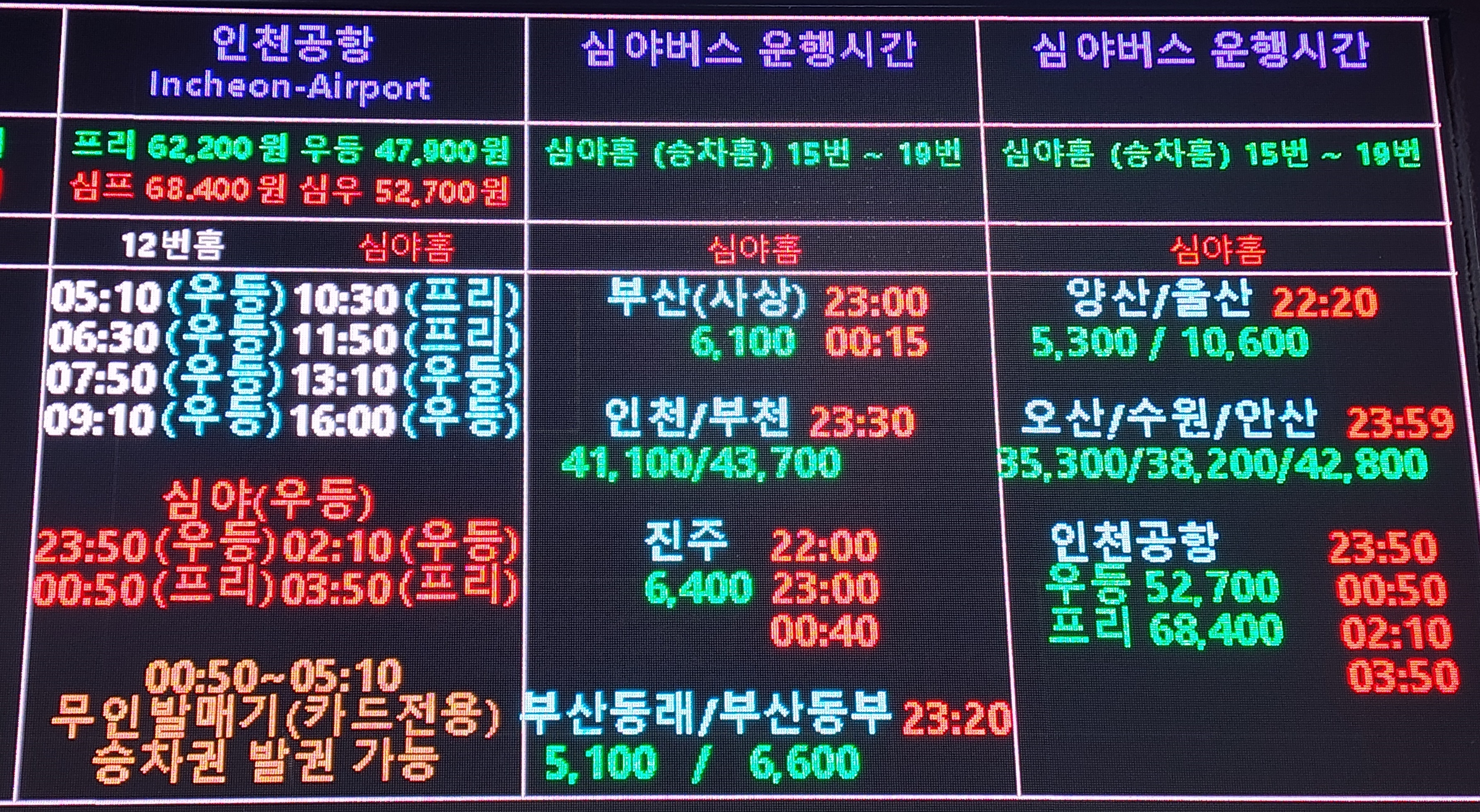부산 사상, 인천, 부천, 진주, 부산 동래 동부, 양사느 올산, 오사느 수원, 안산 방면.