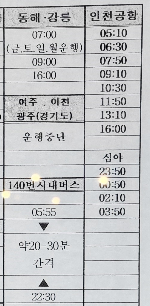 마산 출발 동해, 강릉, 여주, 인천공항,