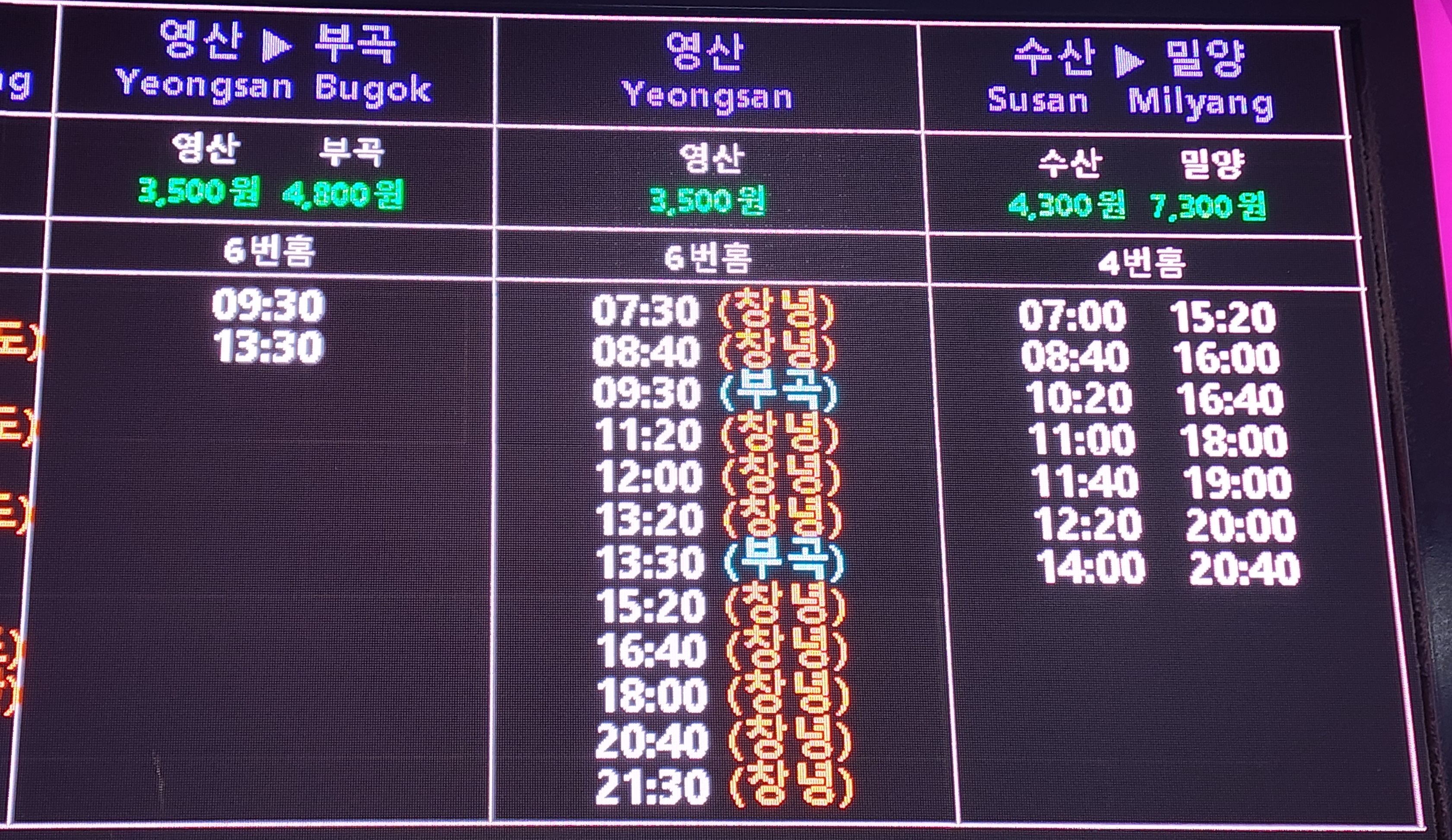 마산 출발 영산, 부곡, 수산, 밀양 방면.