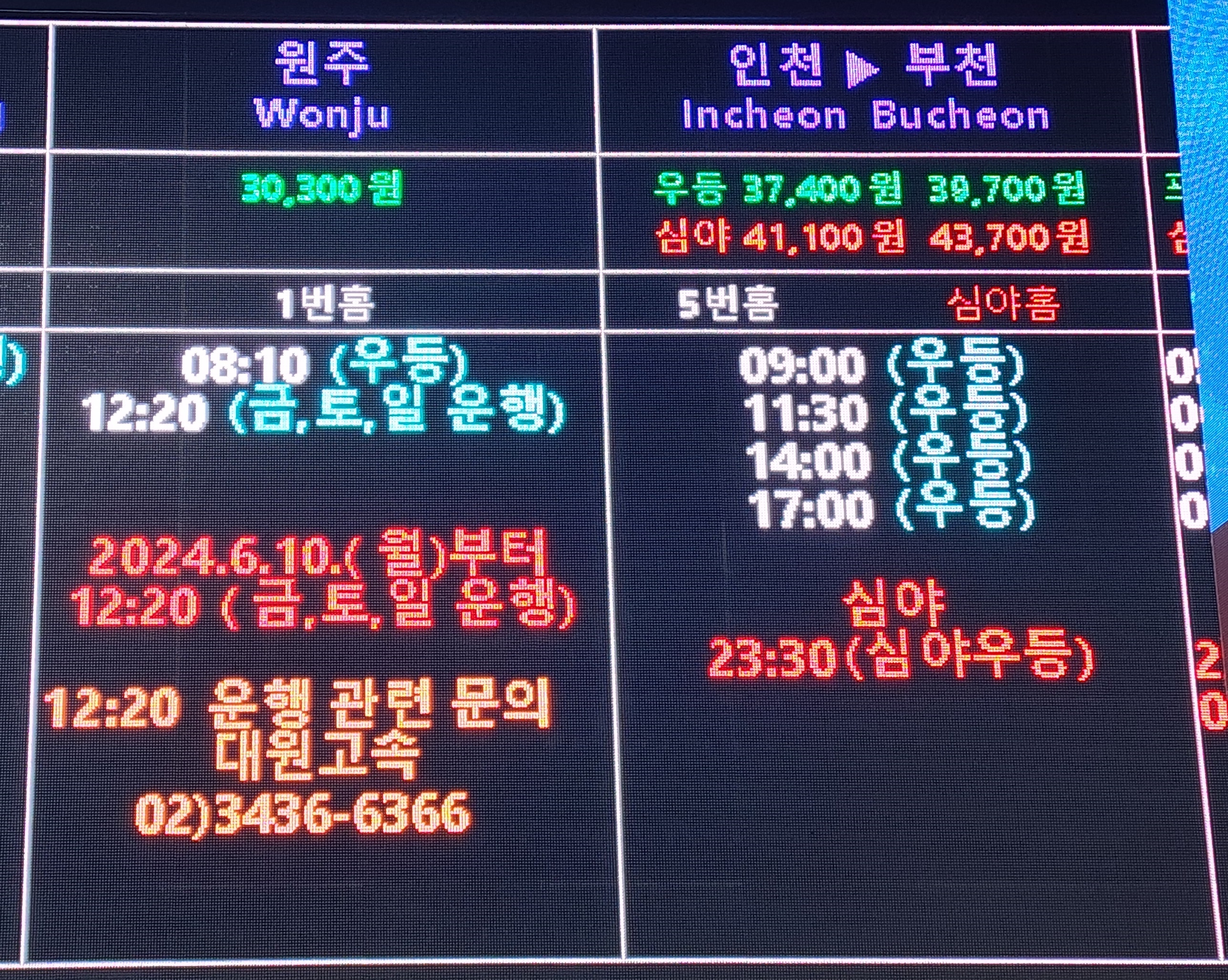 부산 사상, 인천, 부천, 진주, 부산 동래 동부, 양사느 올산, 오사느 수원, 안산 방면.
