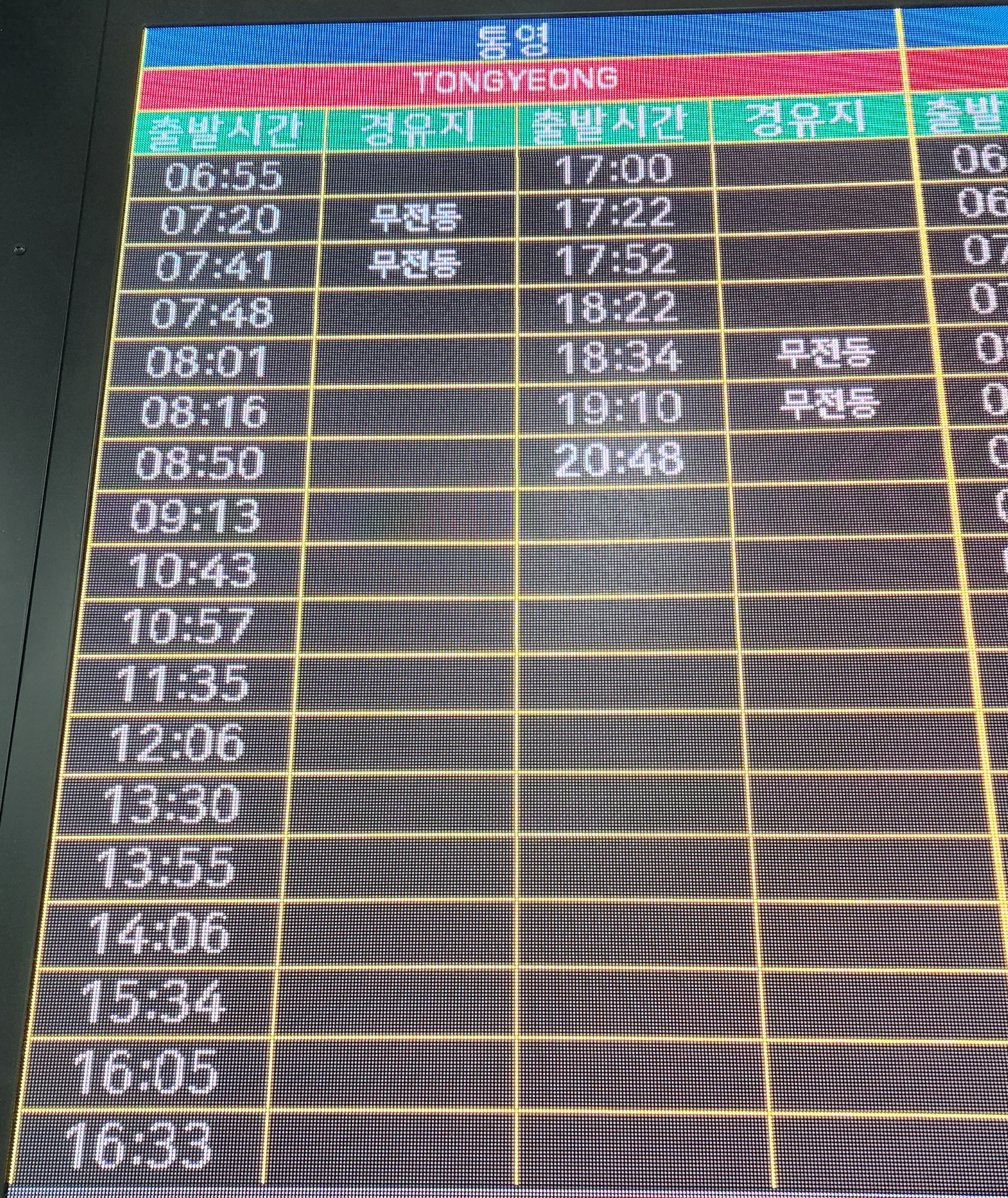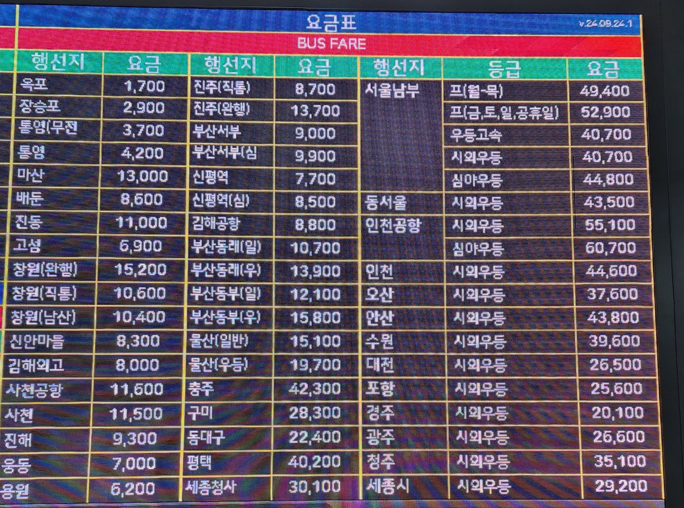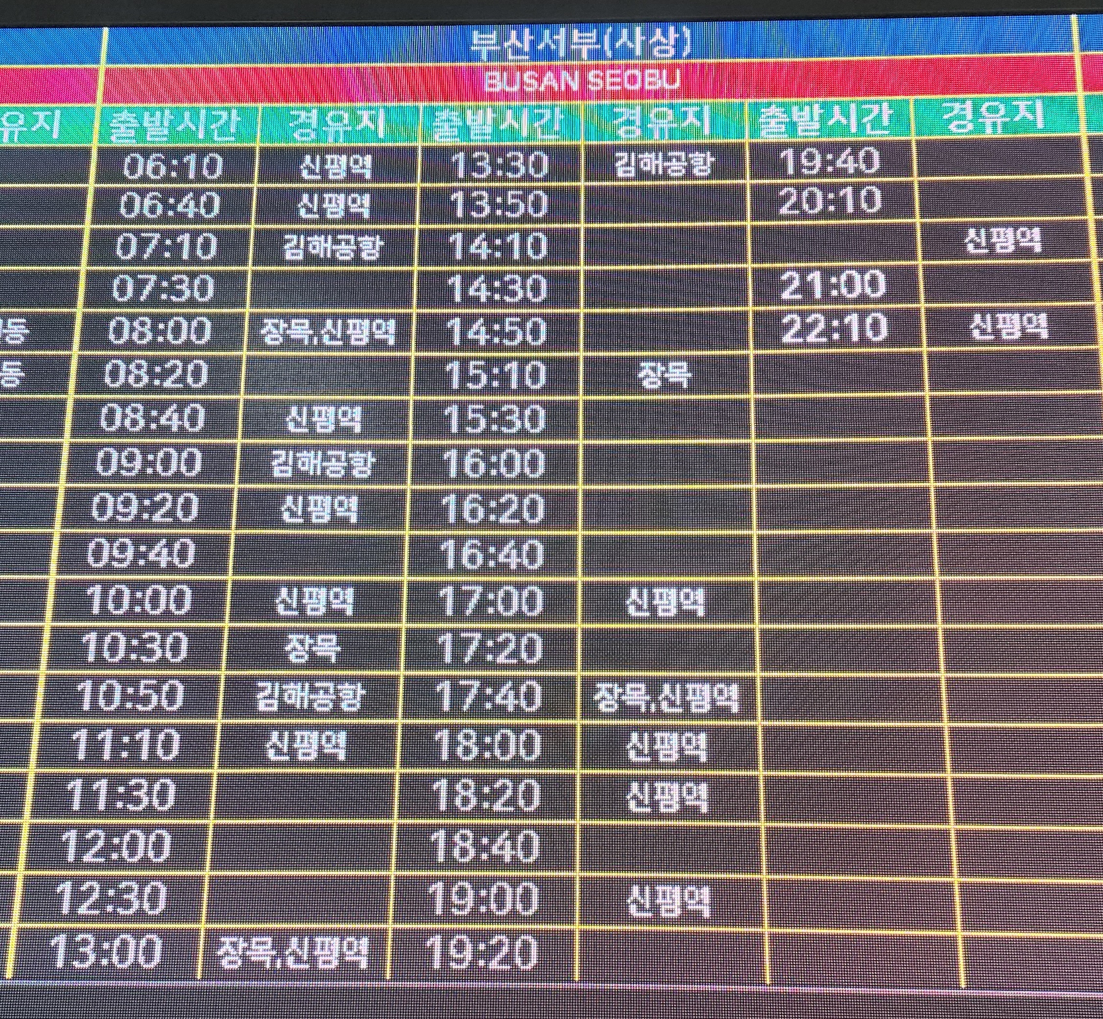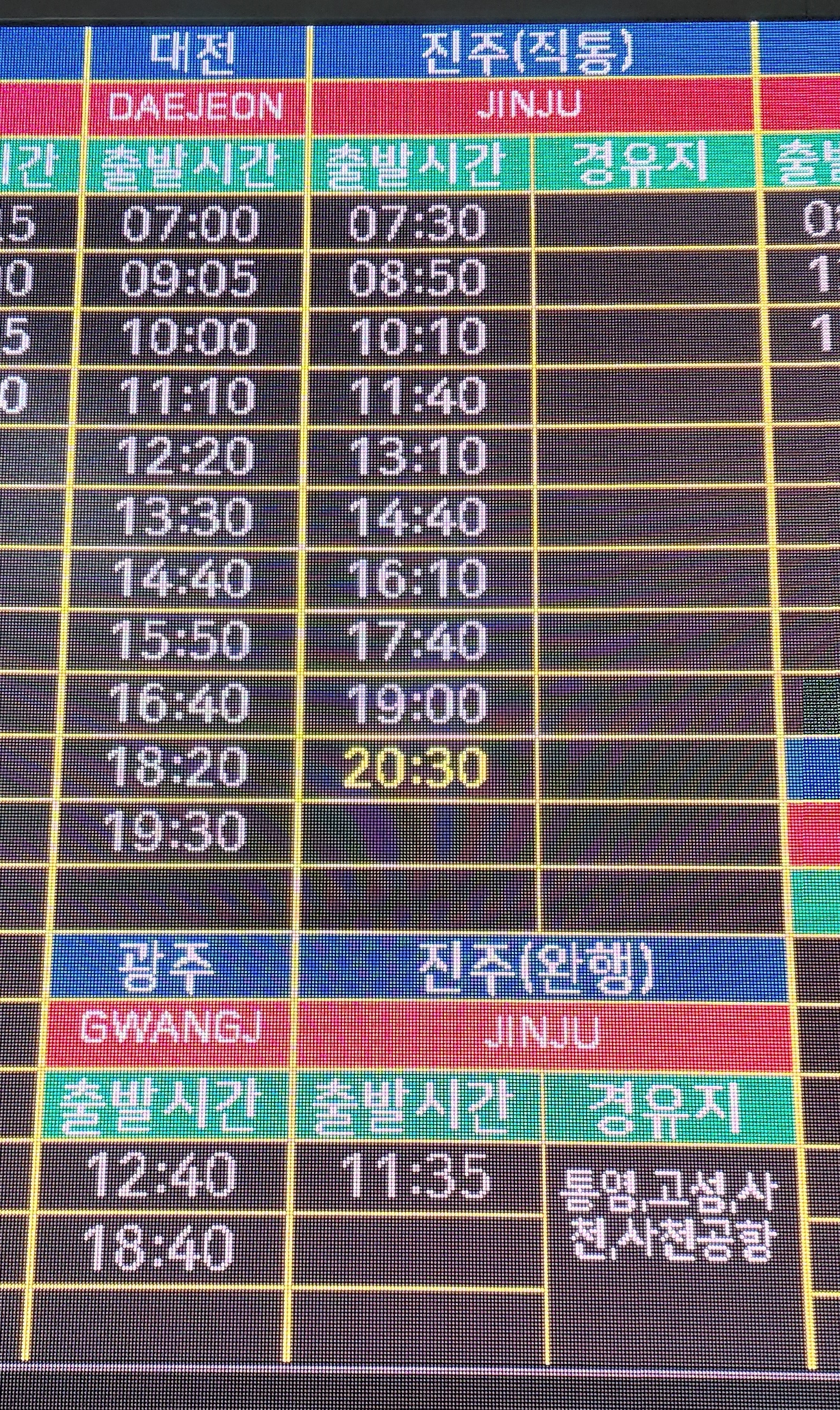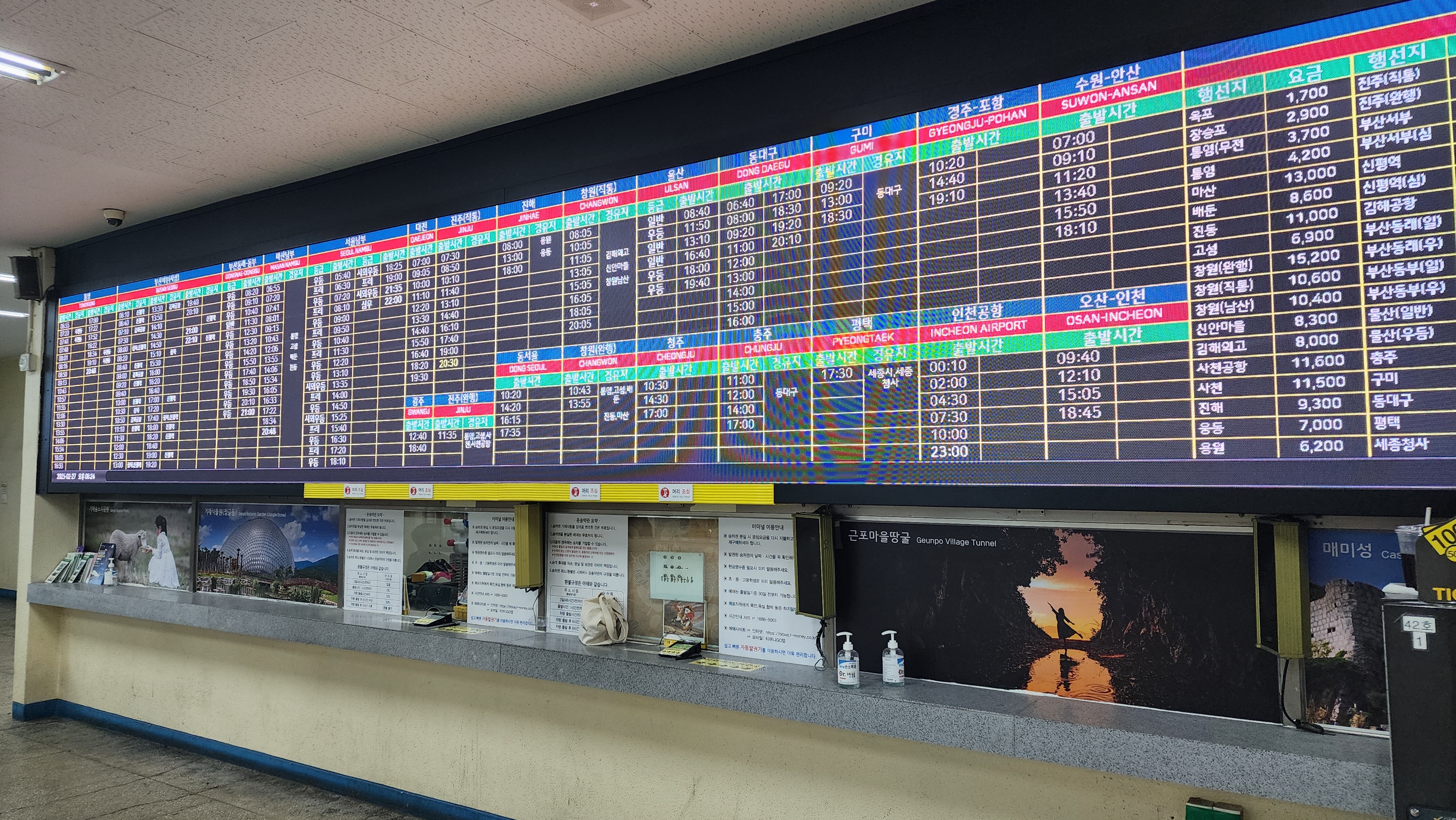 고현 출발 구미, 경주, 포항, 수원, 안산, 평택, 잋넡공항, 오산, 인천 방면.