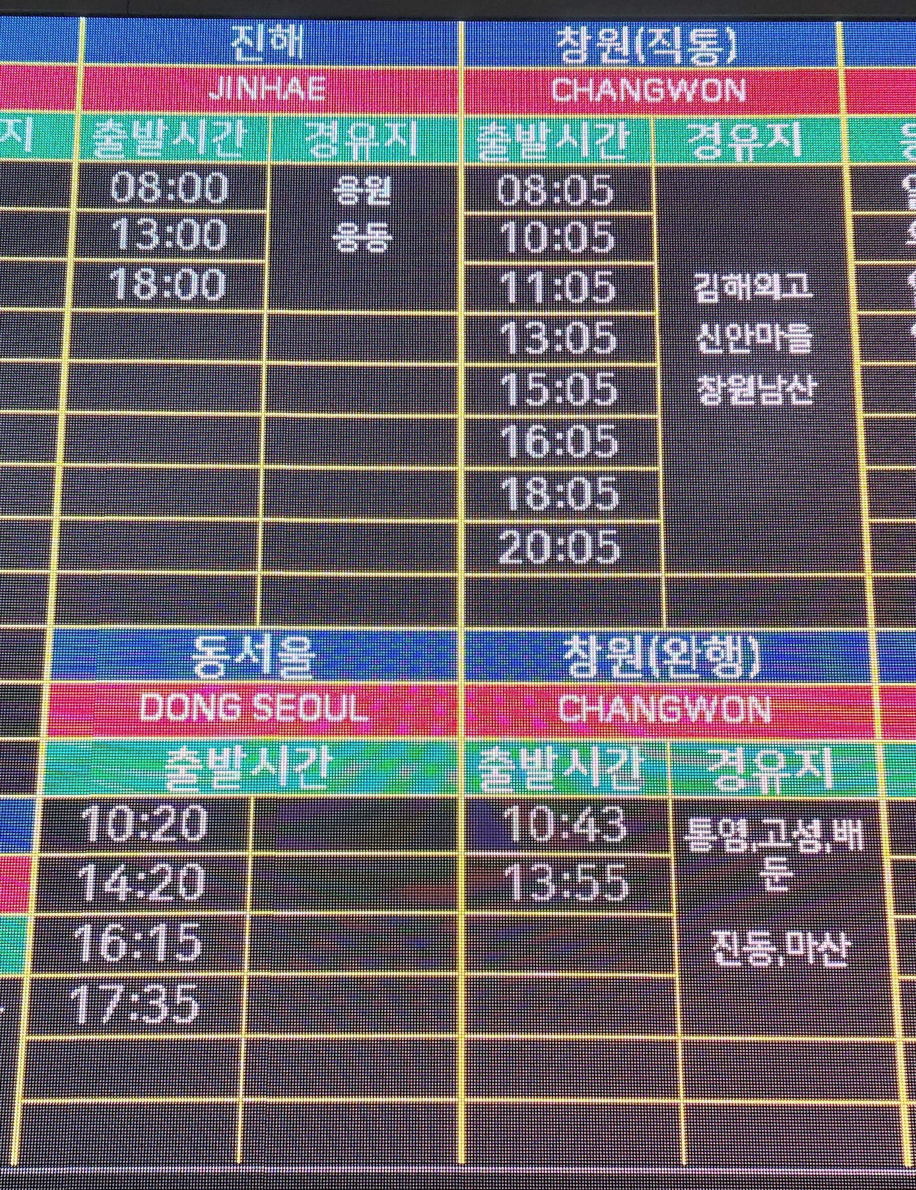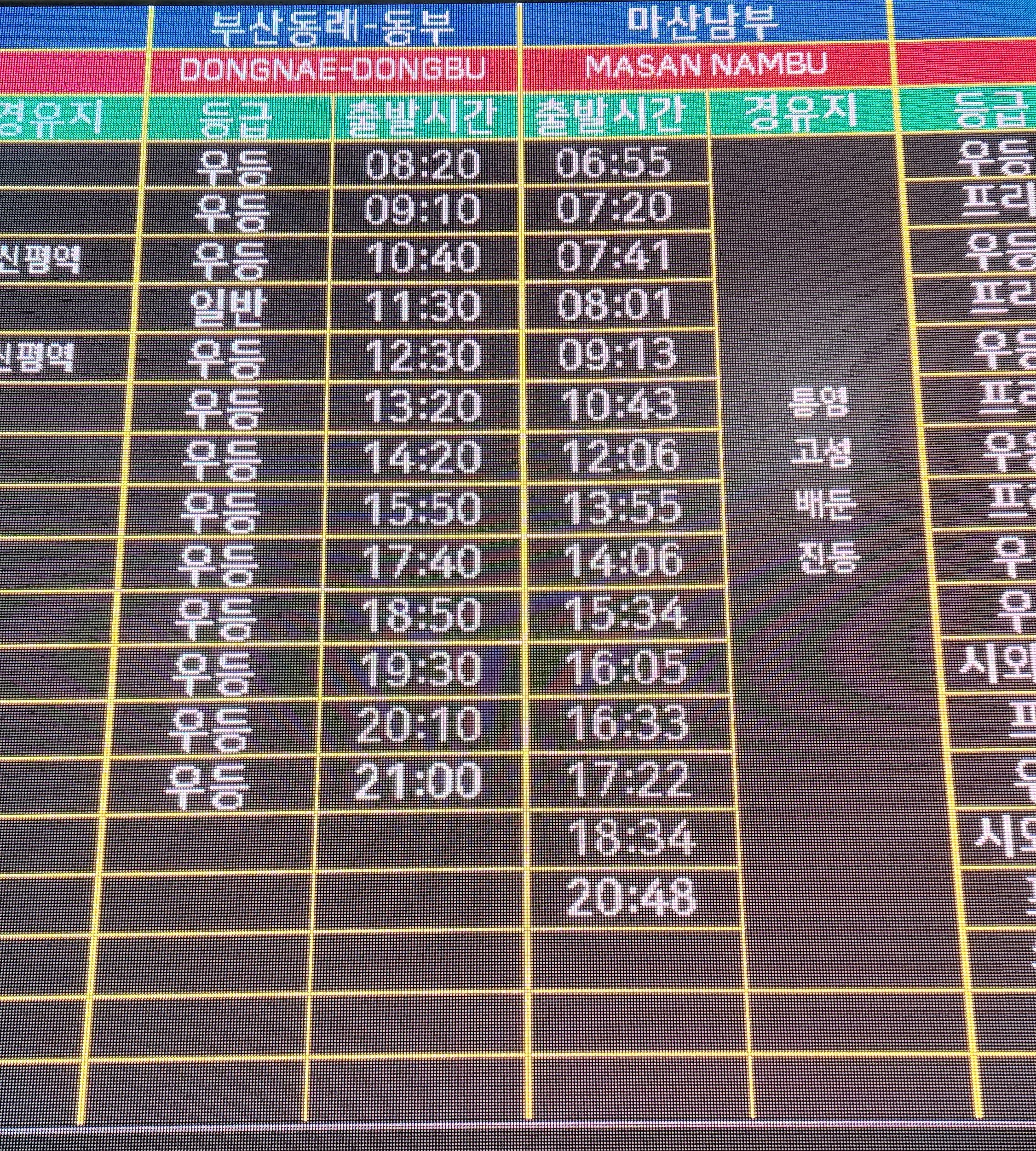 고현 출발 부산 동래 동부, 마산 남부 방면.