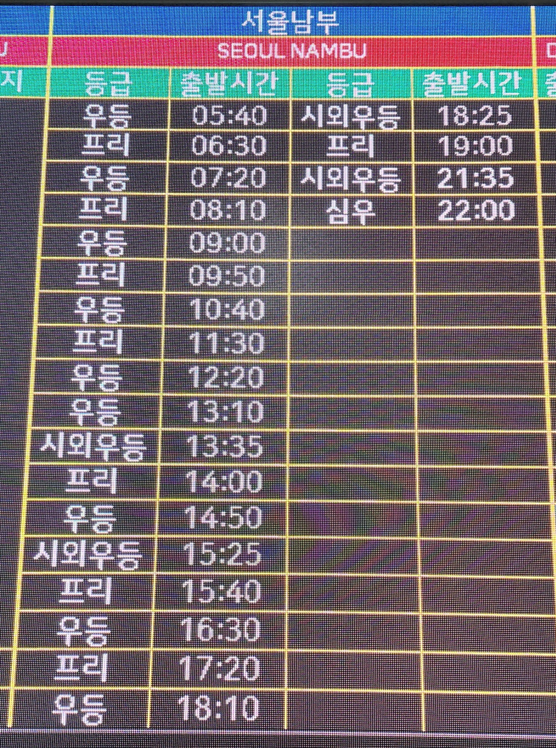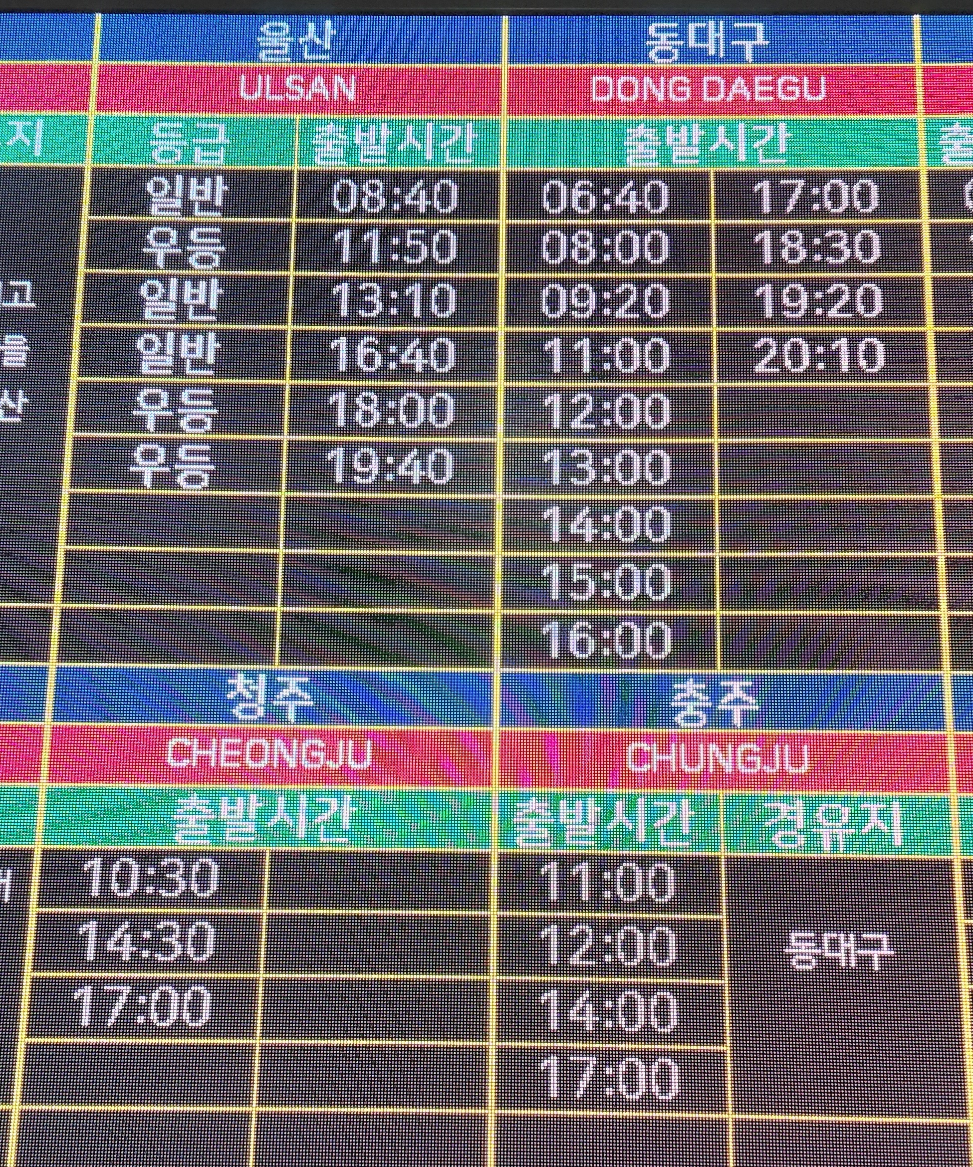 고현 출발 울산, 동대구, 청주, 충주 방면.