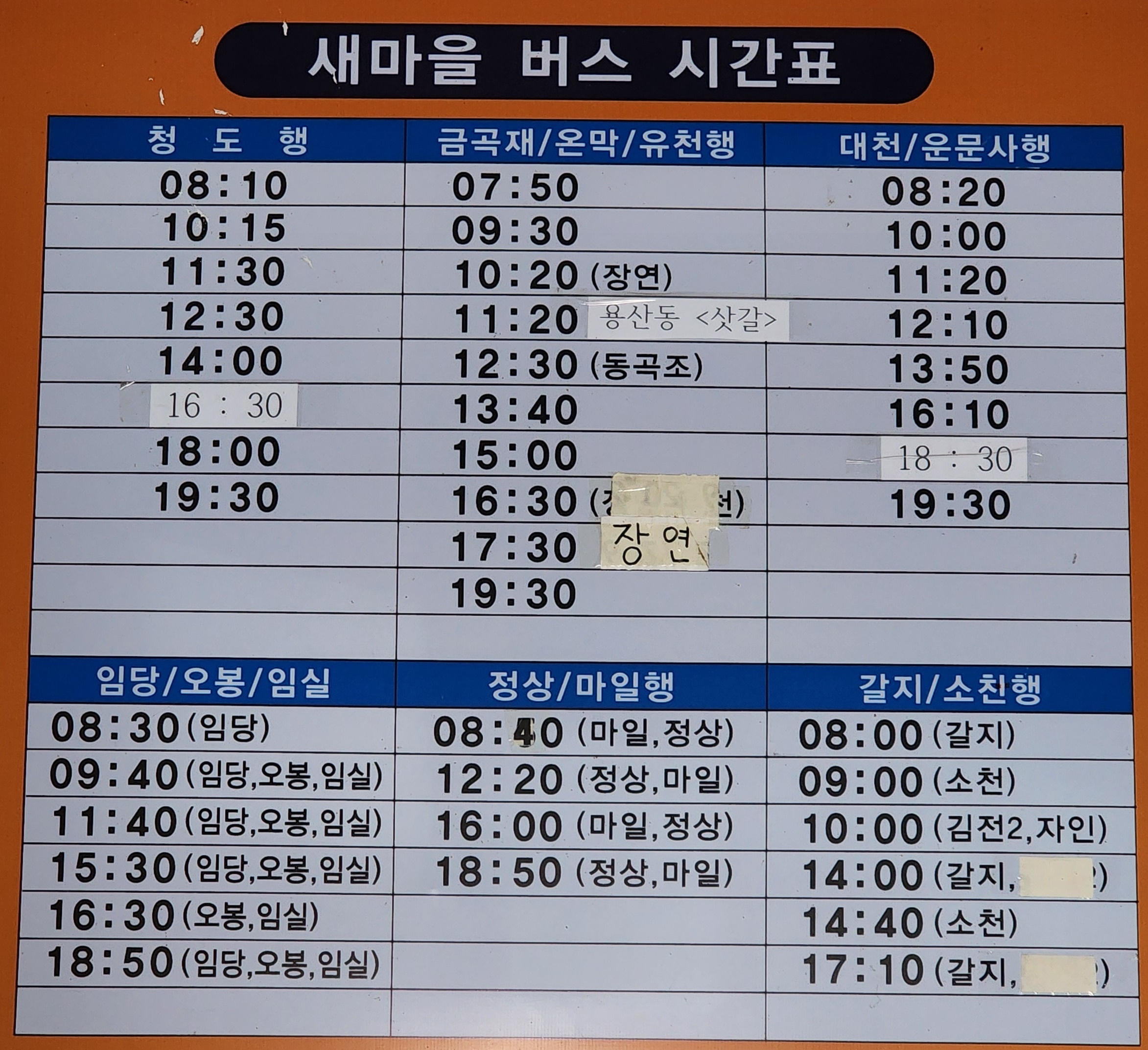 새마을 버스 시간표