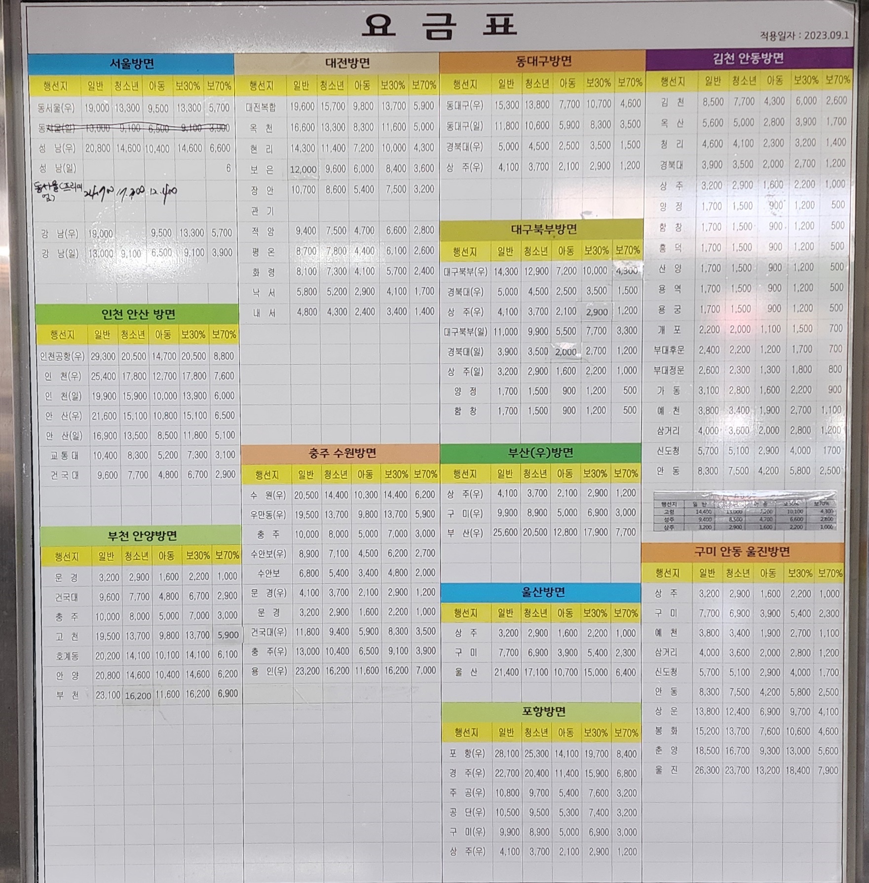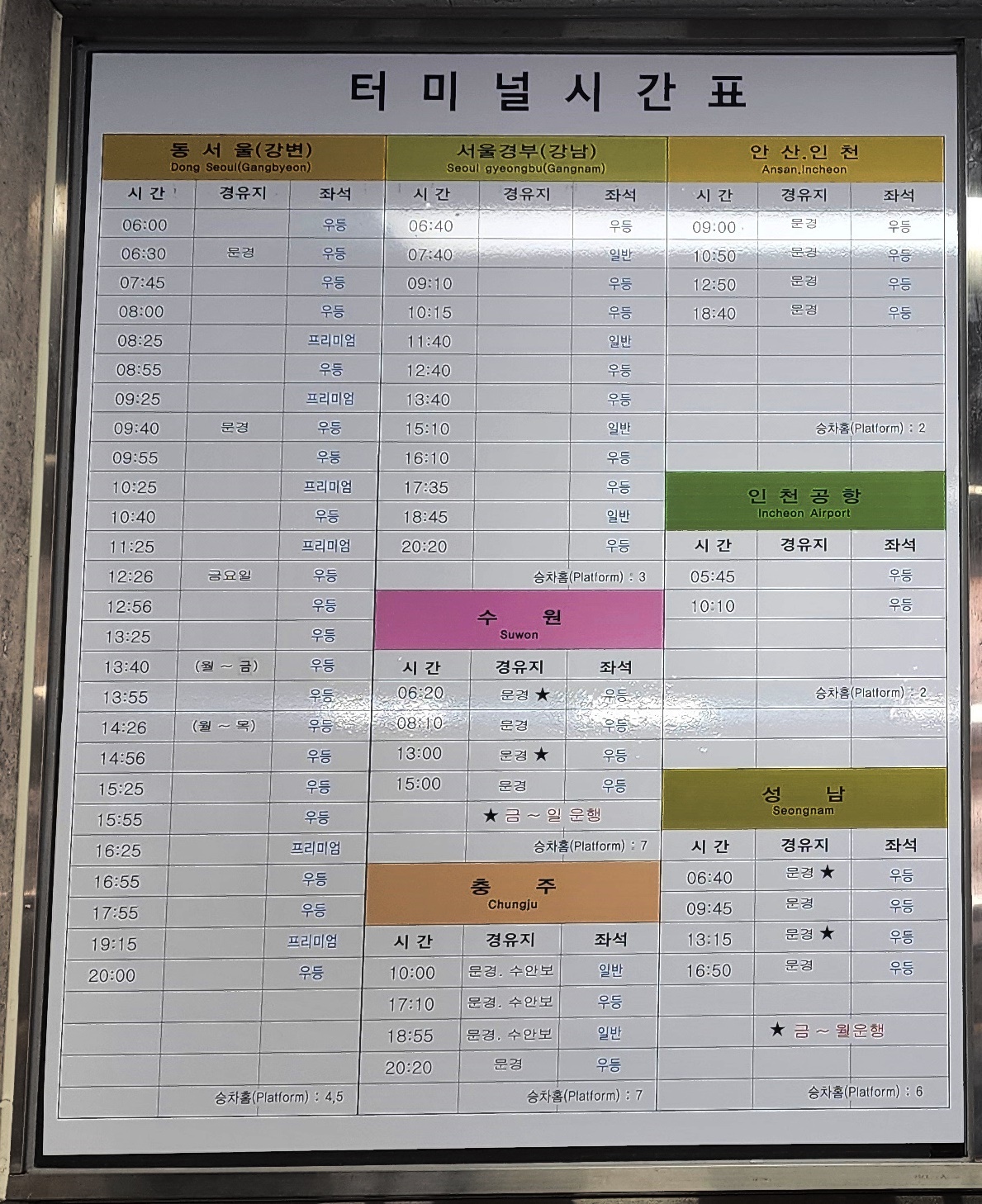 점촌 출발 서울 방면 강남고속 경부선 시간표