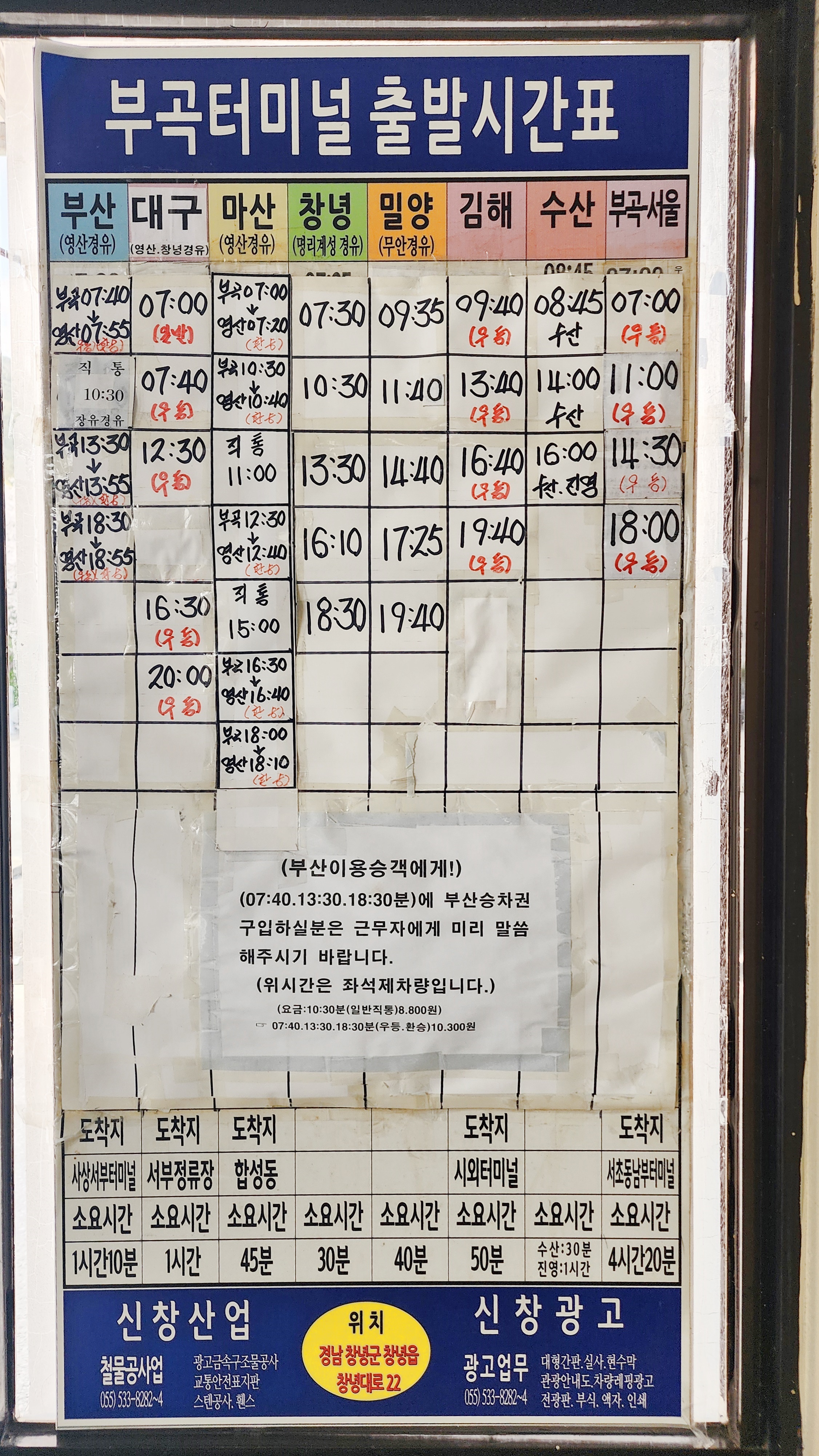 부곡 출발 부산, 마산 가시는 분은 근무자에게 말을 해주셔야 타고 가실 차량을 알려 드립니다.